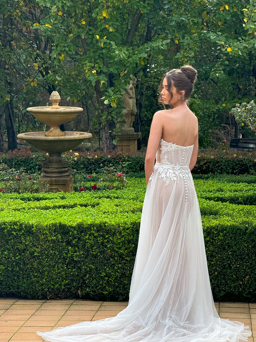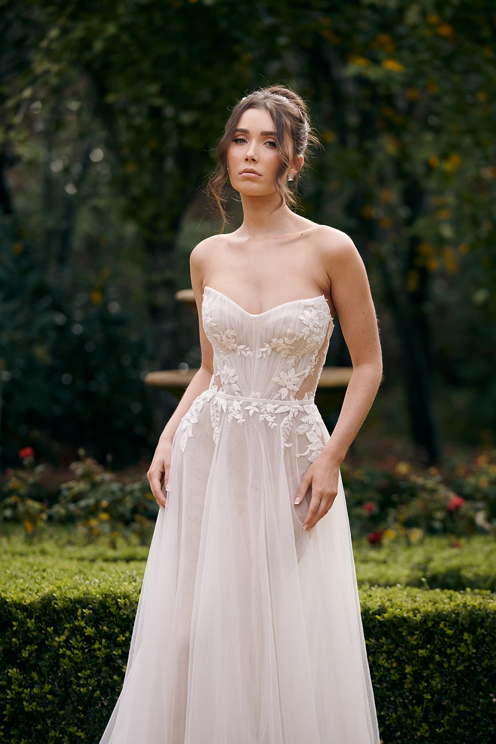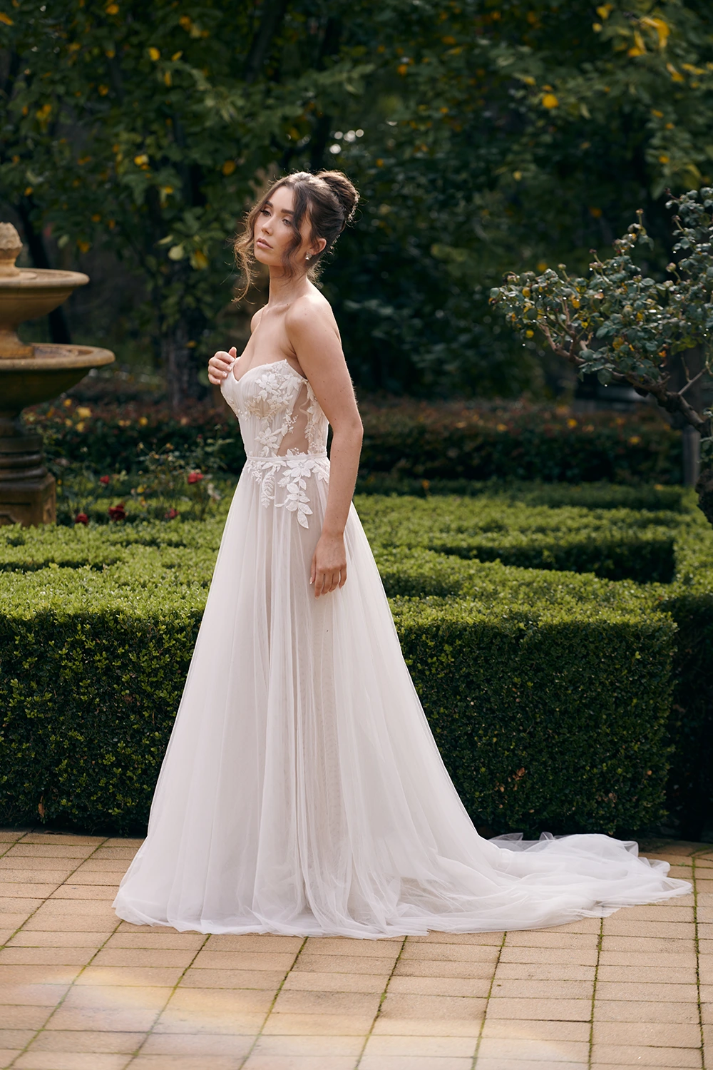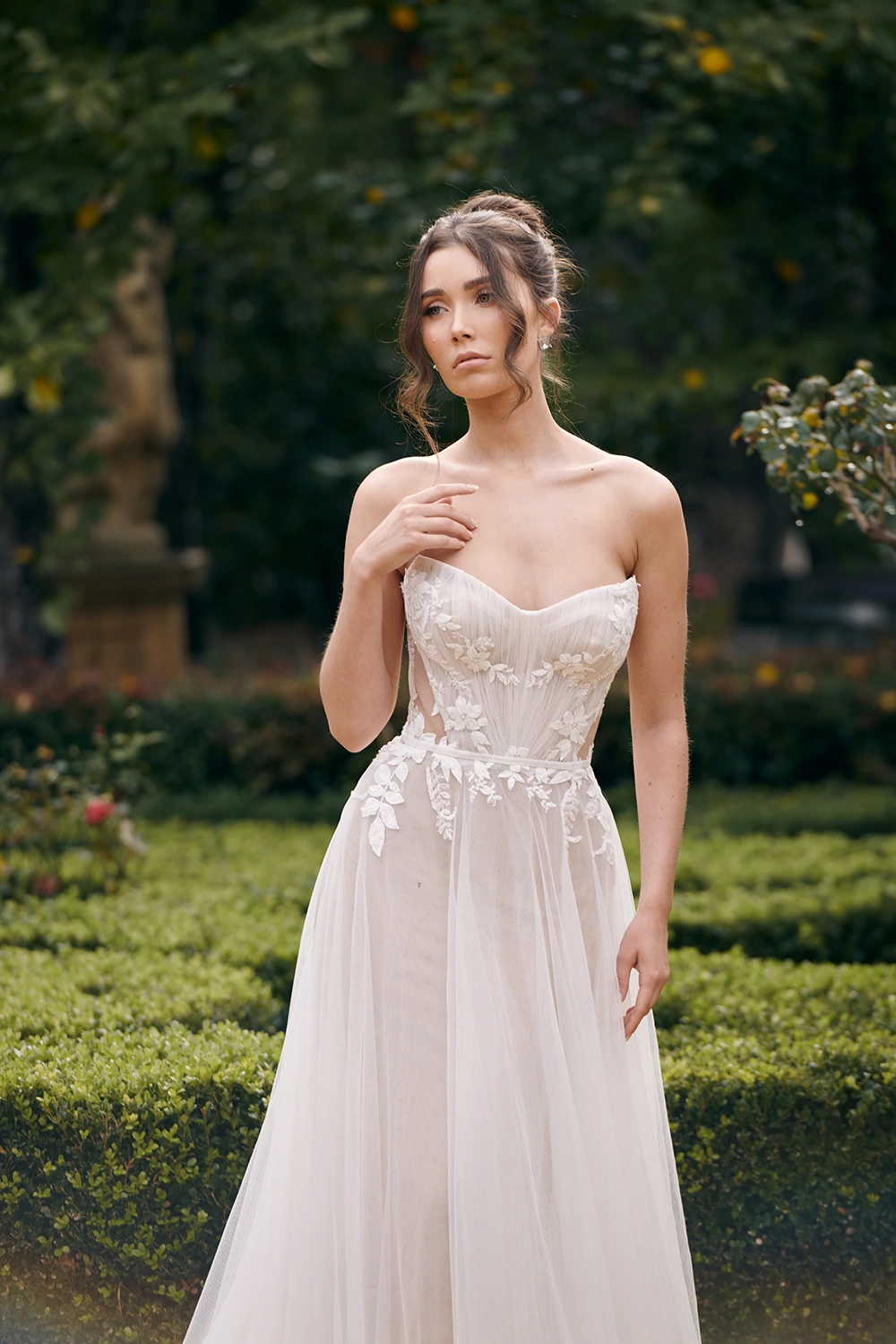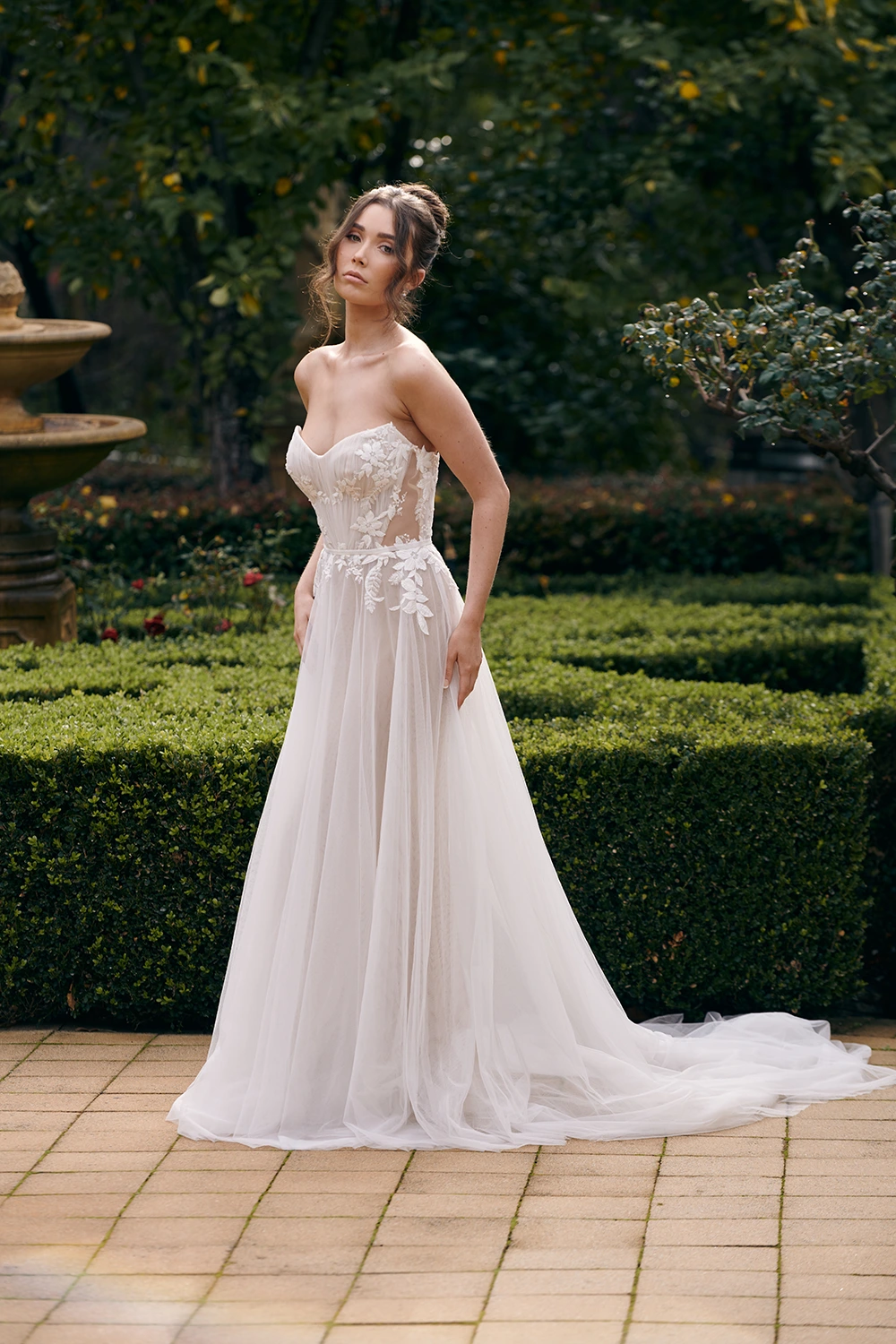 Das Modell WS23170 von Cizzy Bridal Australia ist ein florales, leicht fließendes A-Linien Brautkleid mit zarten Applikationen und seitlichen Cut-Outs.