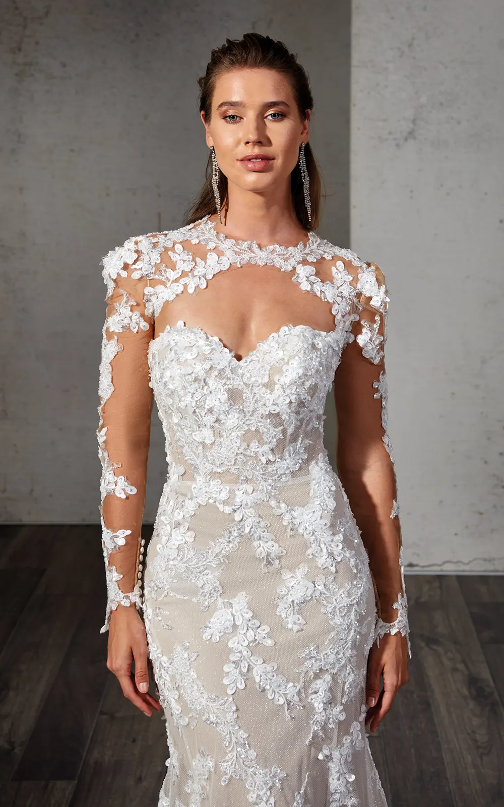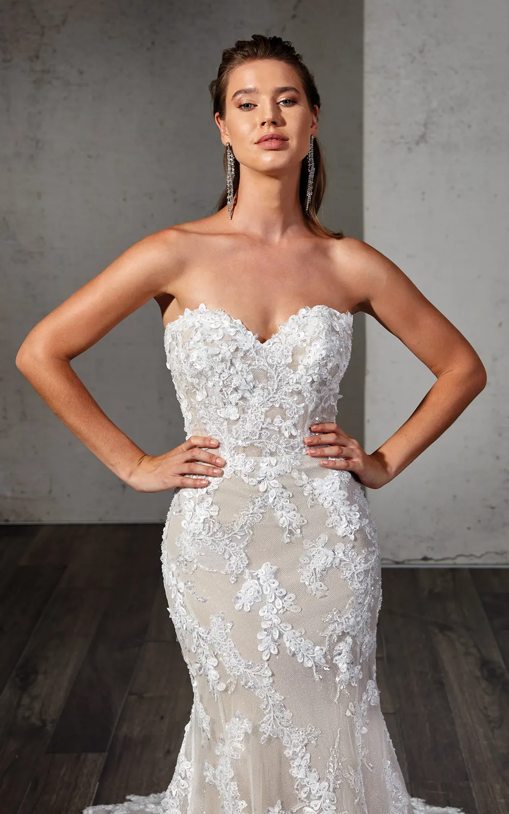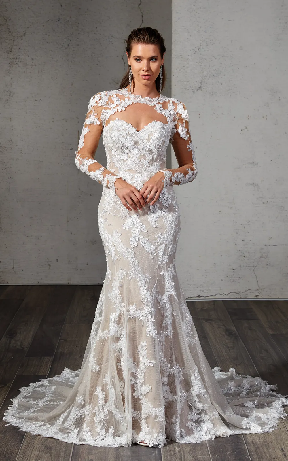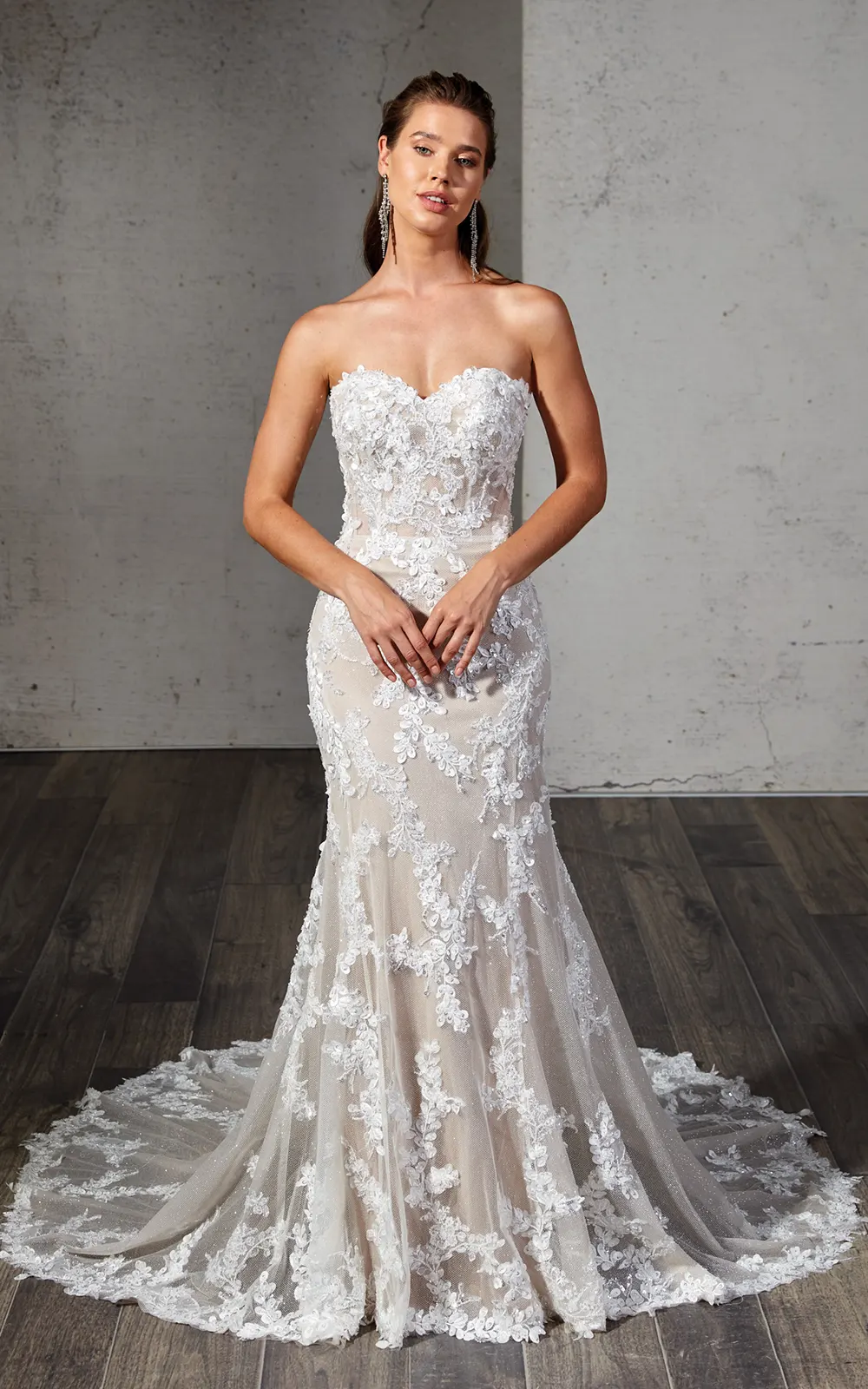 Das Brautkleid Avani von Eddy K ist ein atemberaubendes Meerjungfrauen-Brautkleid mit vielen exklusiven Details. Mit raffiniertem Rücken, besonderen Spitzenverzierungen, Perlenstickereien, Pailletten und einem unverkennbaren, romantischem Flair ist es ein absolutes Traumbrautkleid.
