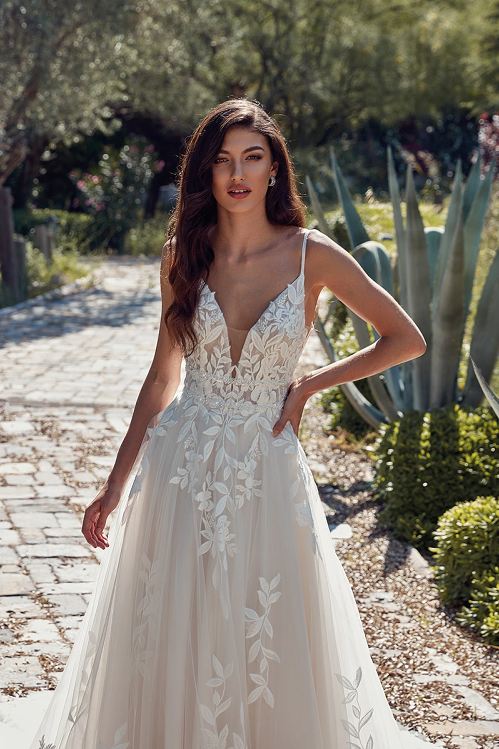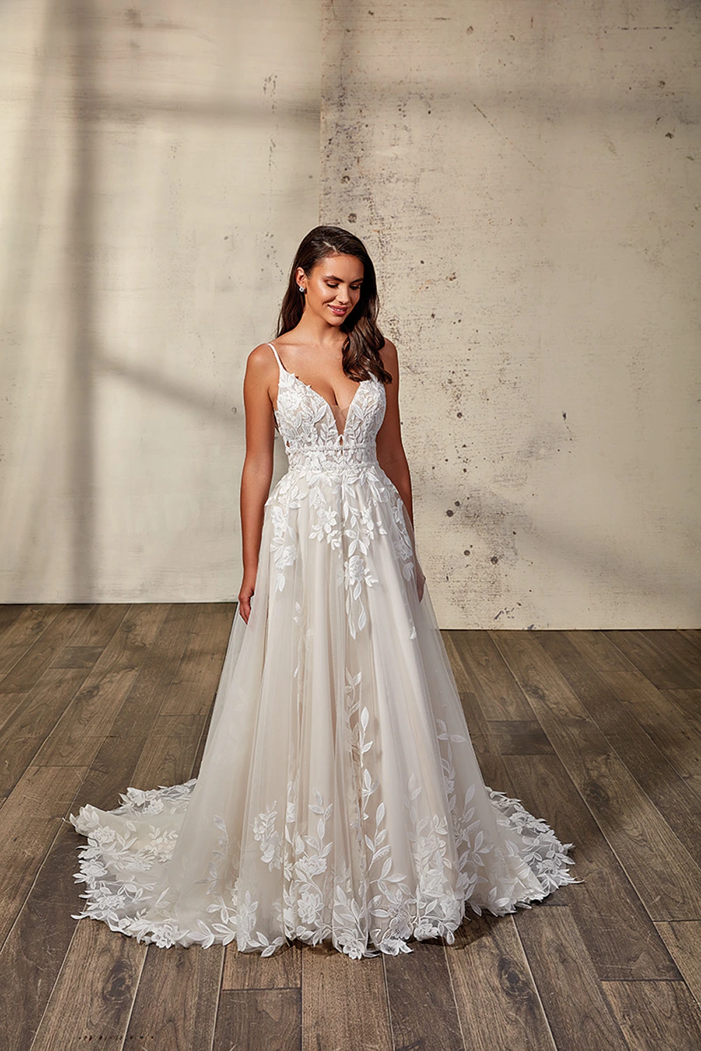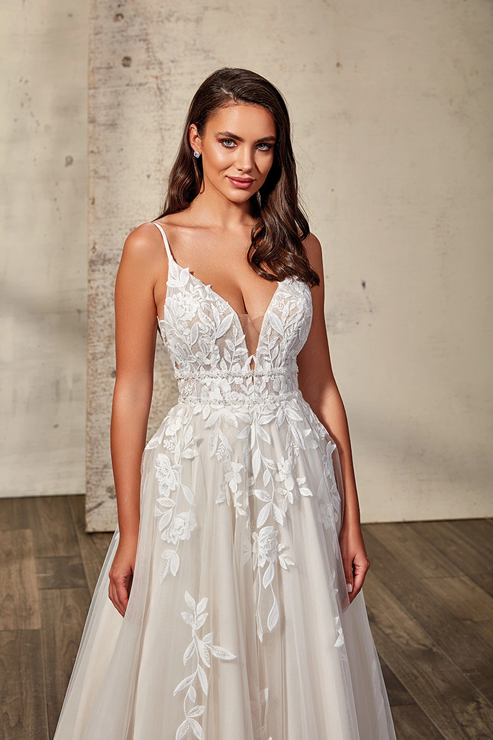 Das Modell Sylvie von Eddy K ist ein florales A-Linien Kleid mit einem tiefen V-Ausschnitt und zarten Trägern. Die Taille wird durch 2 Glitzerbänder betont!