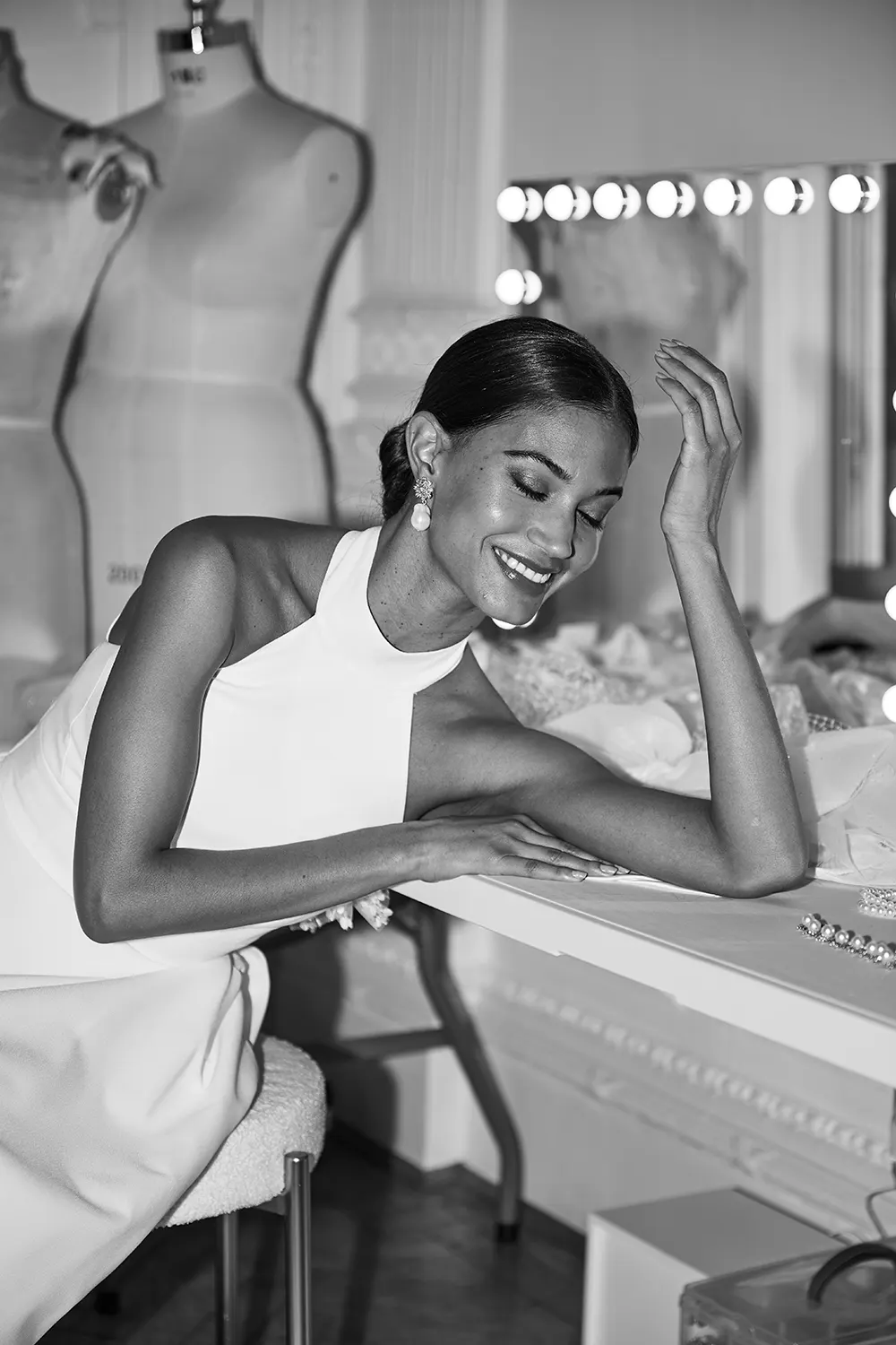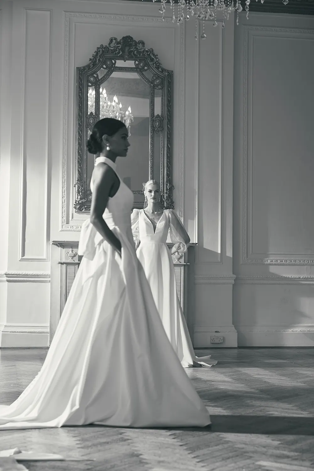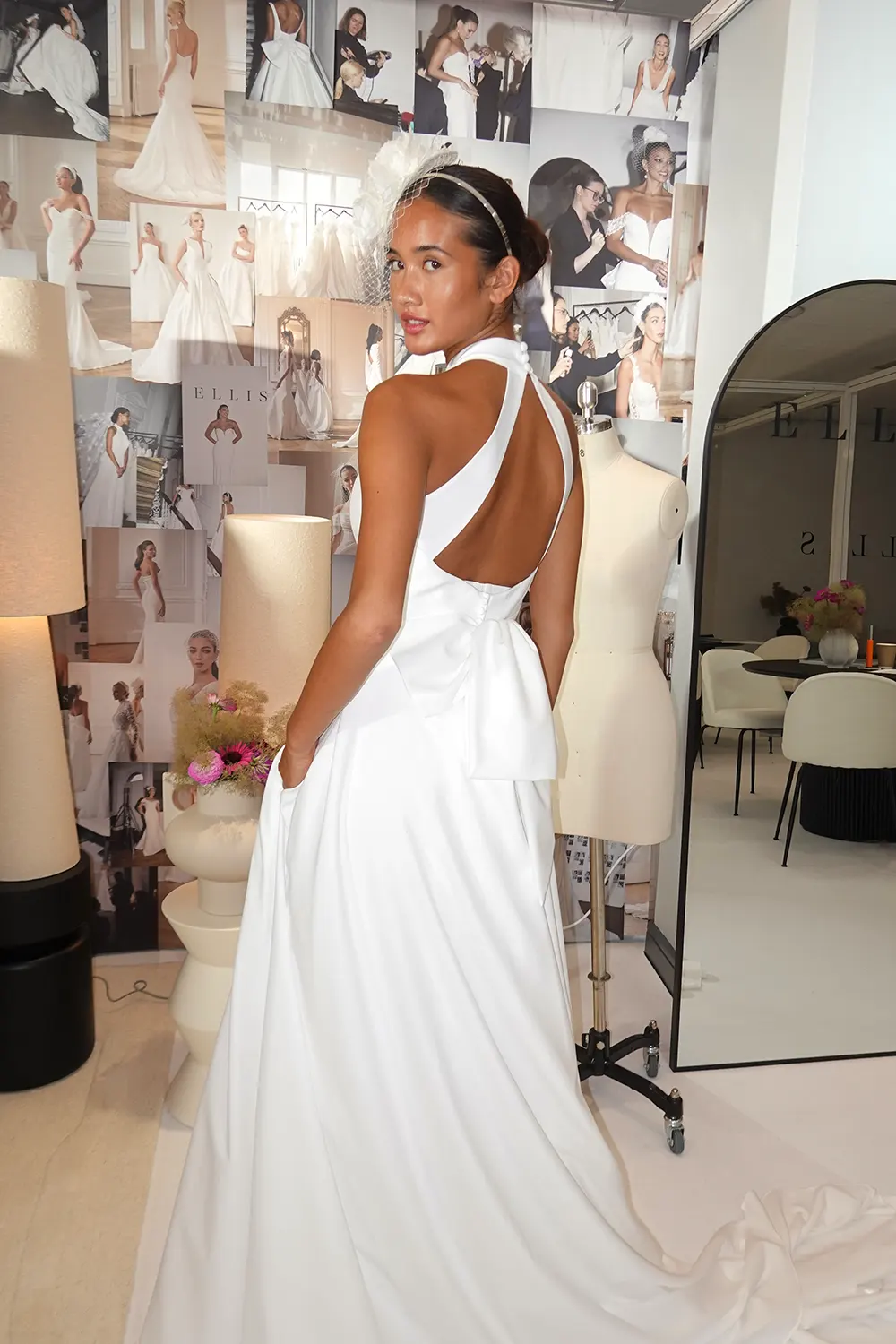 Das Brautkleid Hattie von Ellis Bridals ist ein A-Linien Brautkleid mit einem Neckholder und einem cleanen Rock.
