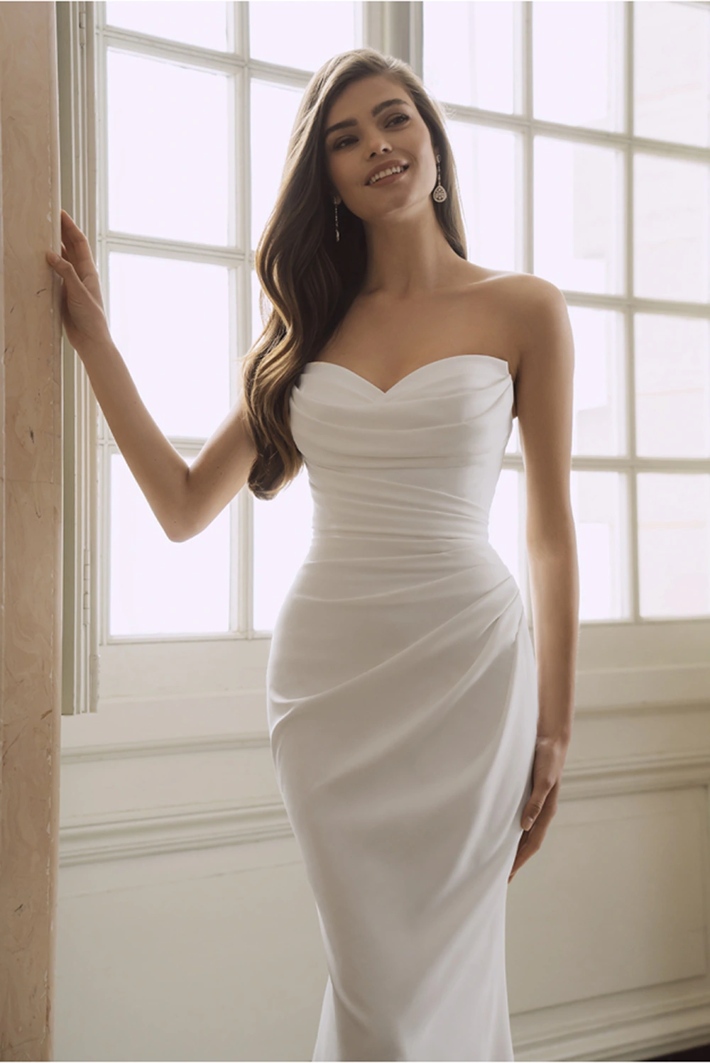Das Modell Fatima von Etoile ist ein Kleid mit Etui-Silhouette, minimalistische Eleganz mit einem herzförmigen Ausschnitt, der einen verspielten und zugleich raffinierten Charme ausstrahlt.