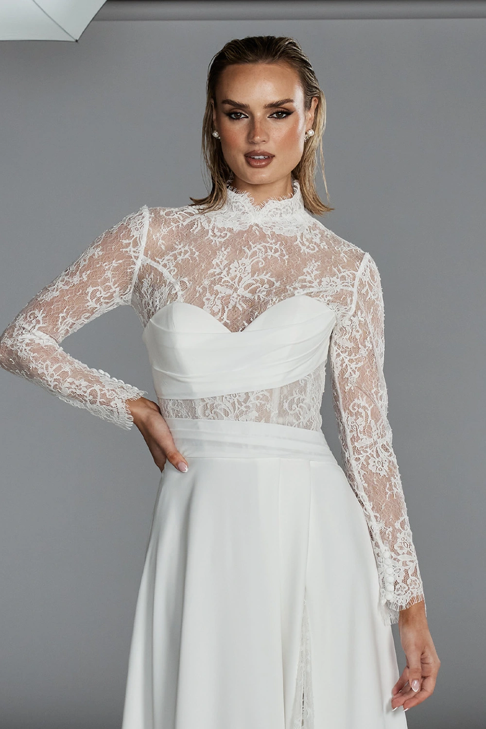- abnehmbare Hals-Spitzenjacke als High-Fashion Element