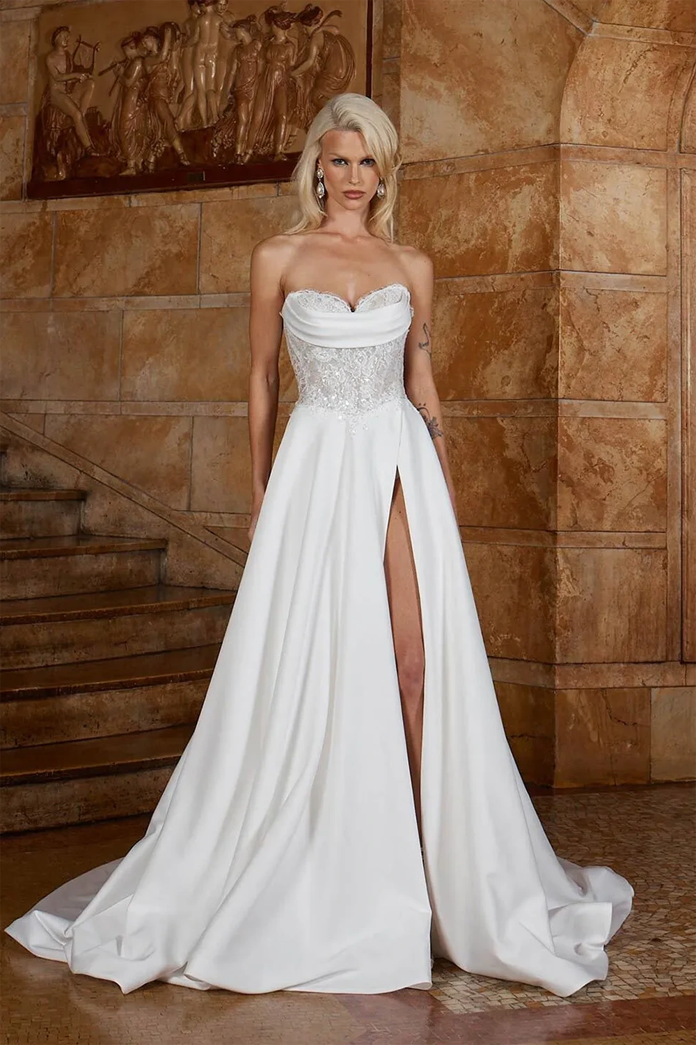 Das Brautkleid Carine von Evie Young Bridal ist ein weich fallendes A-Linien Brautkleid mit dem gewissen Hollywood-Glamour.