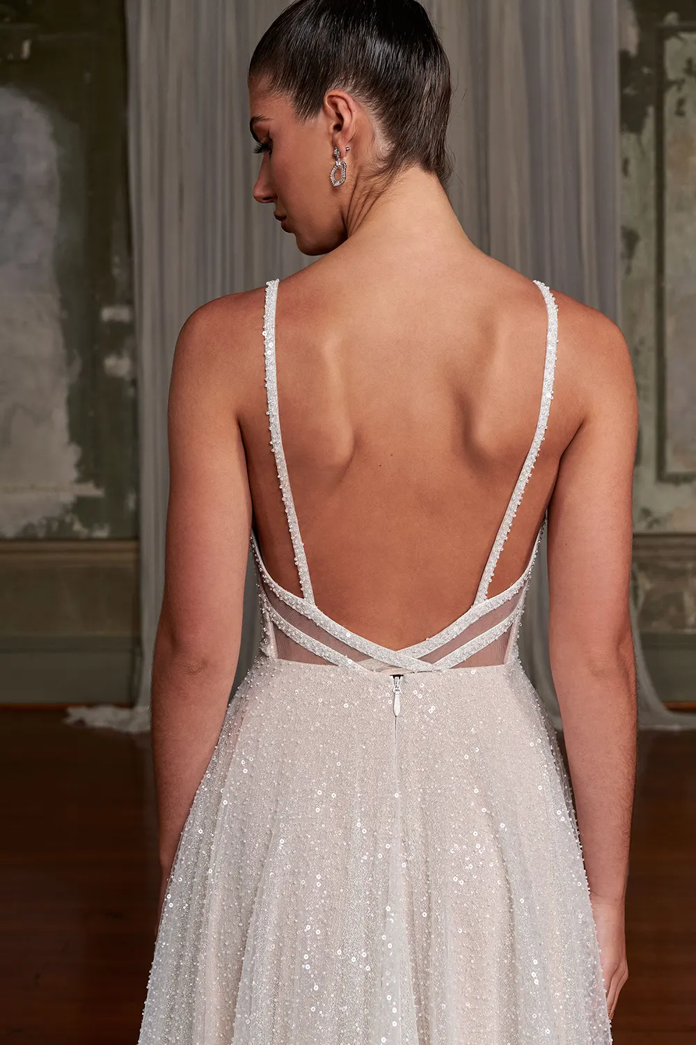 Rücken tiefer, offener V-Rücken mit besonderem Detaik