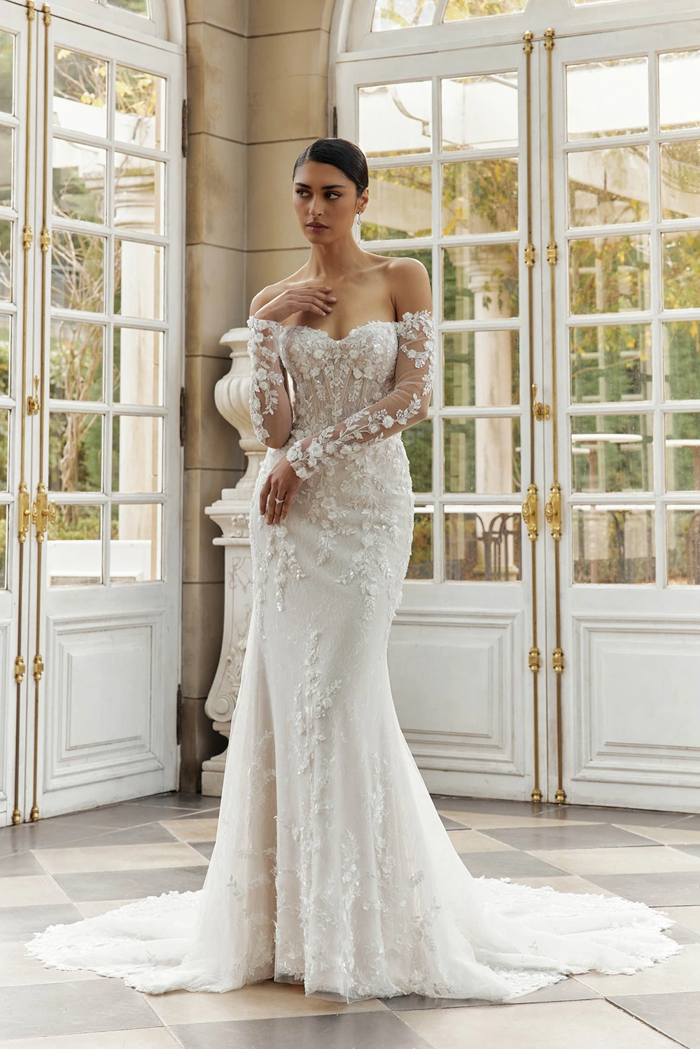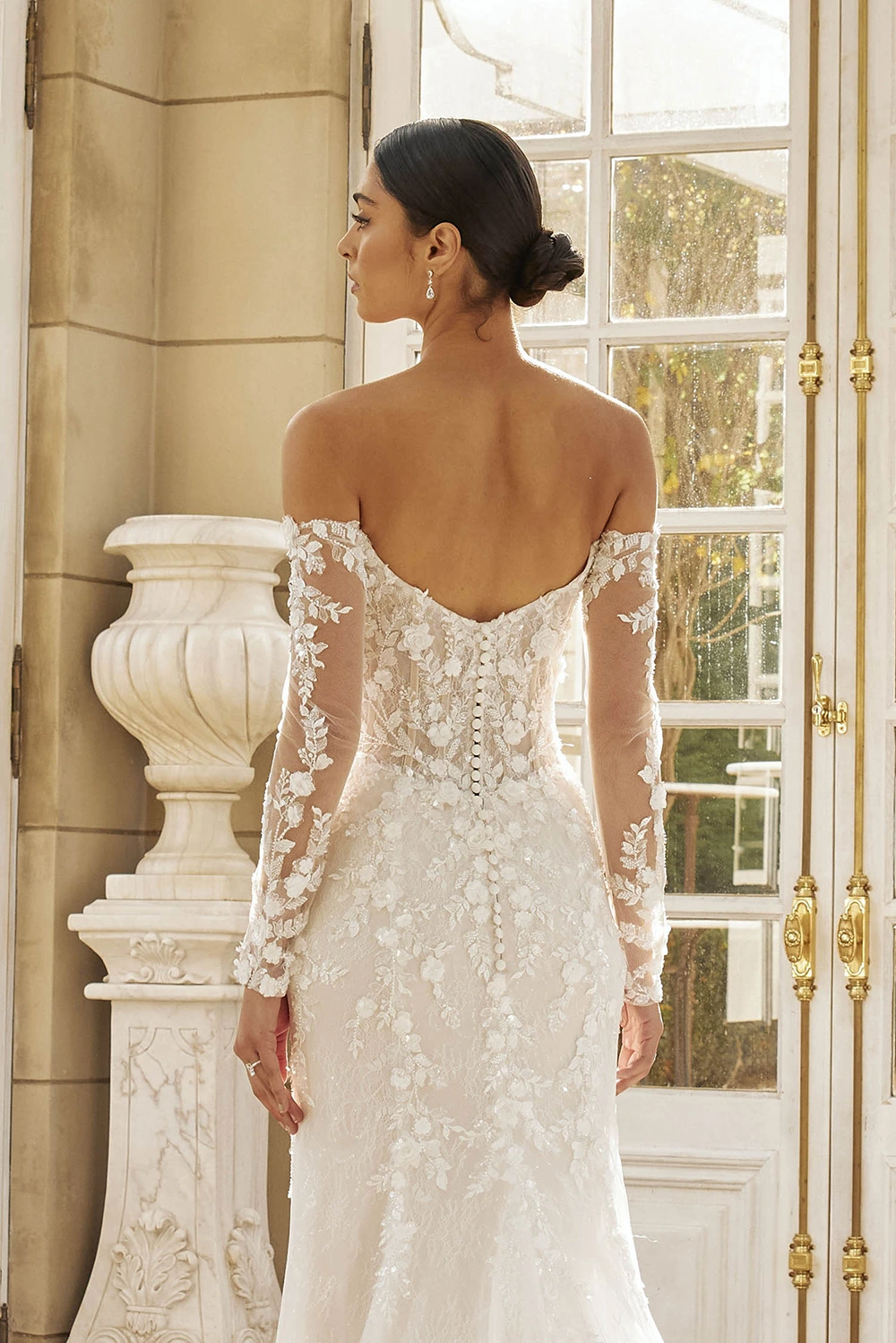 Das Modell Hartford von Jeune Bridal ist ein zartes, florales Fit und Flare Brautkleid mit zarten Blumenornamenten.