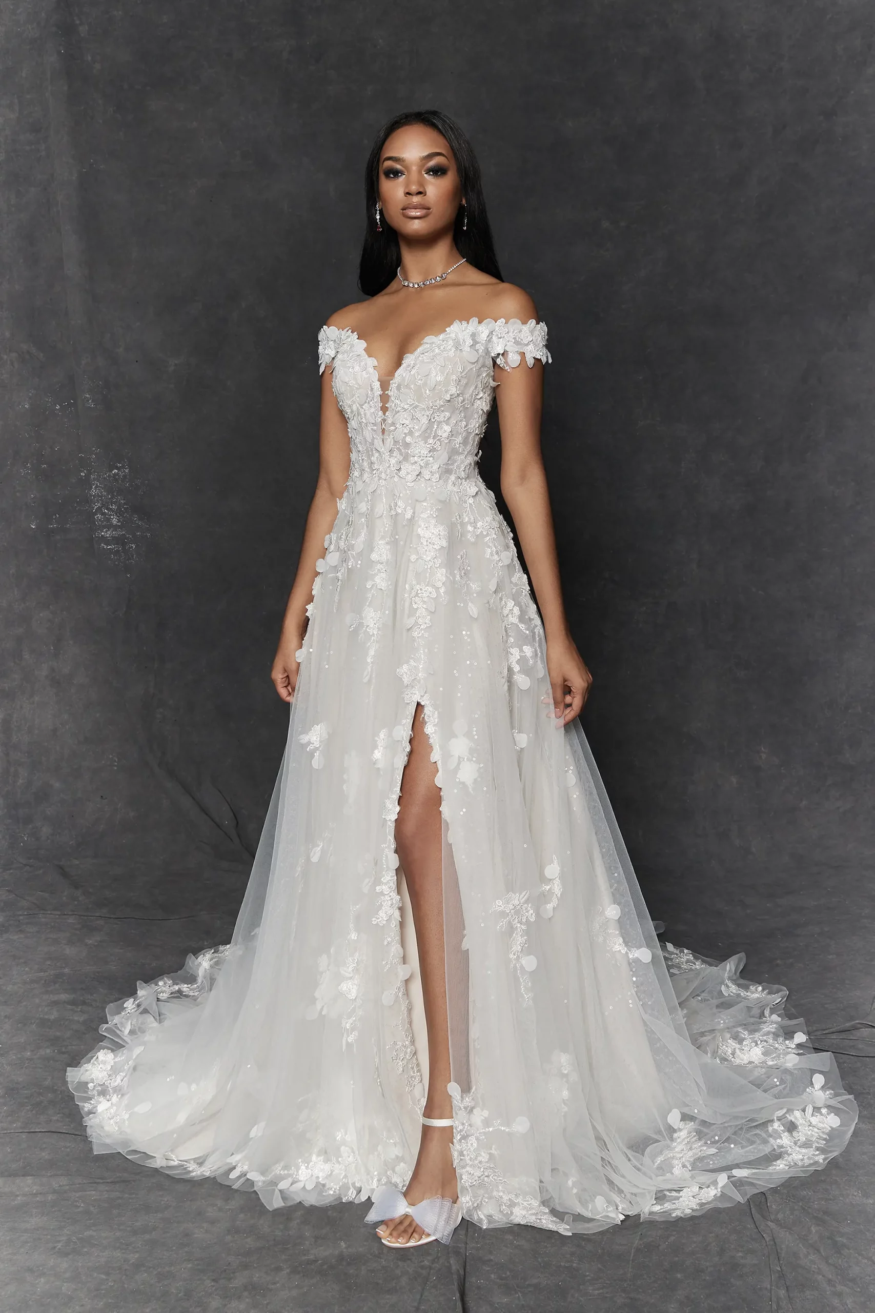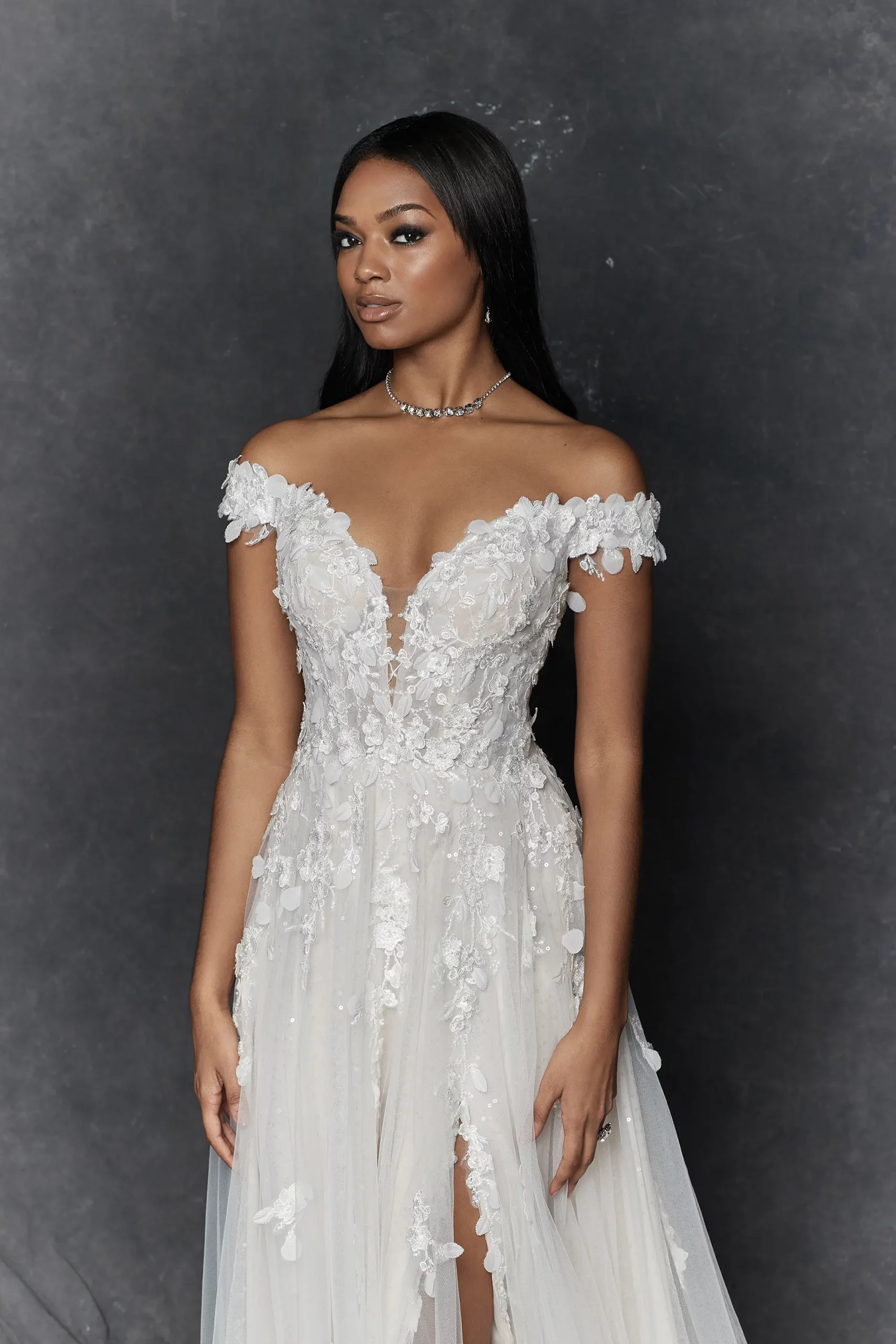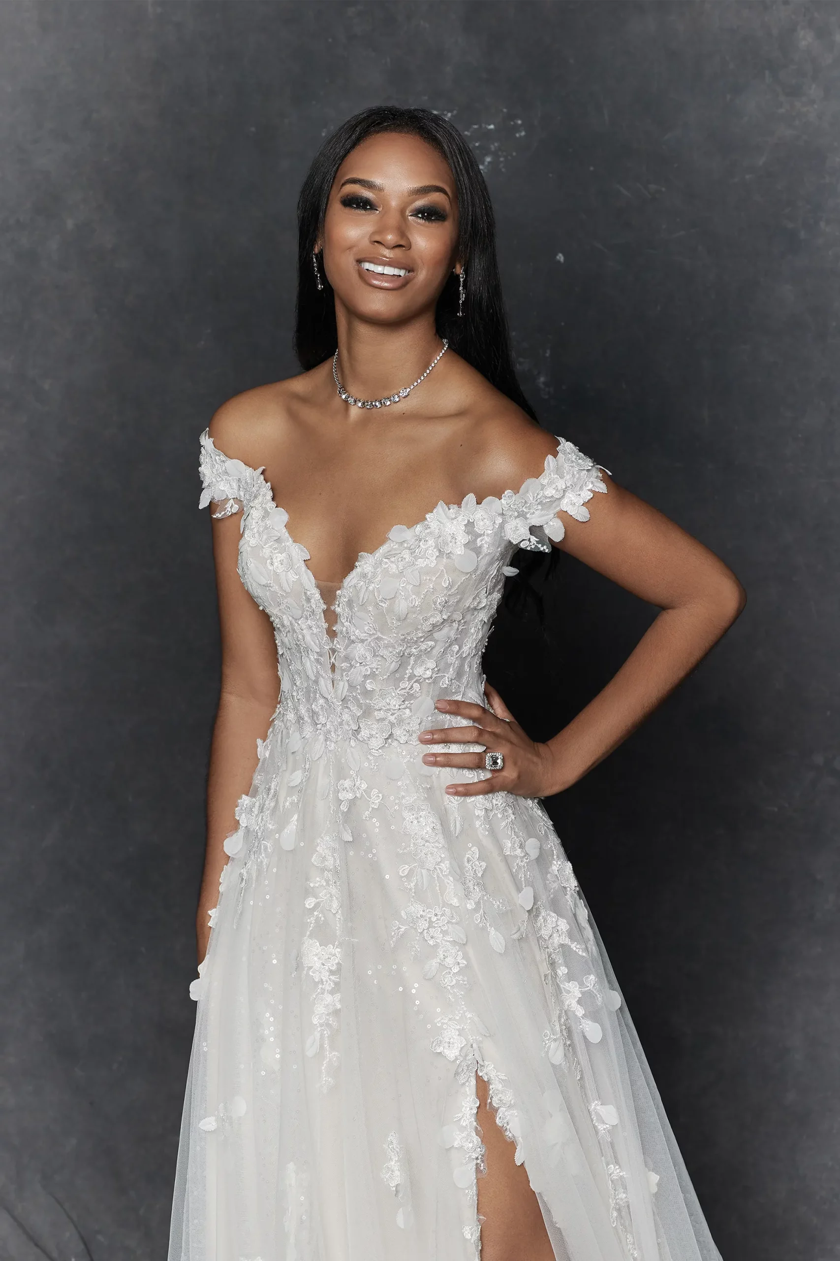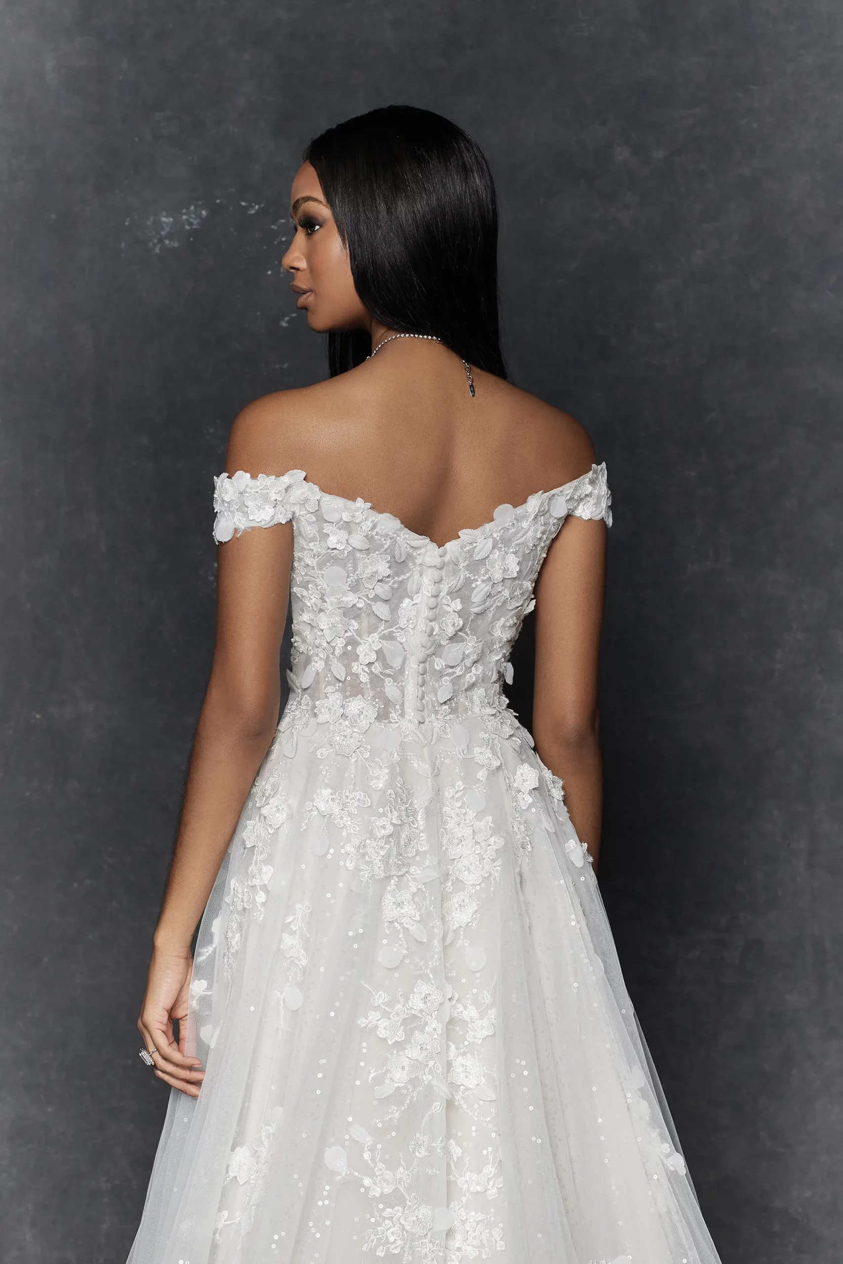 Das Brautkleid Juniper von Justin Alexander ist ein perlenbesetzes, schulterfreies A-Linien Brautkleid, dass dich in romantischen Glanz hüllt.