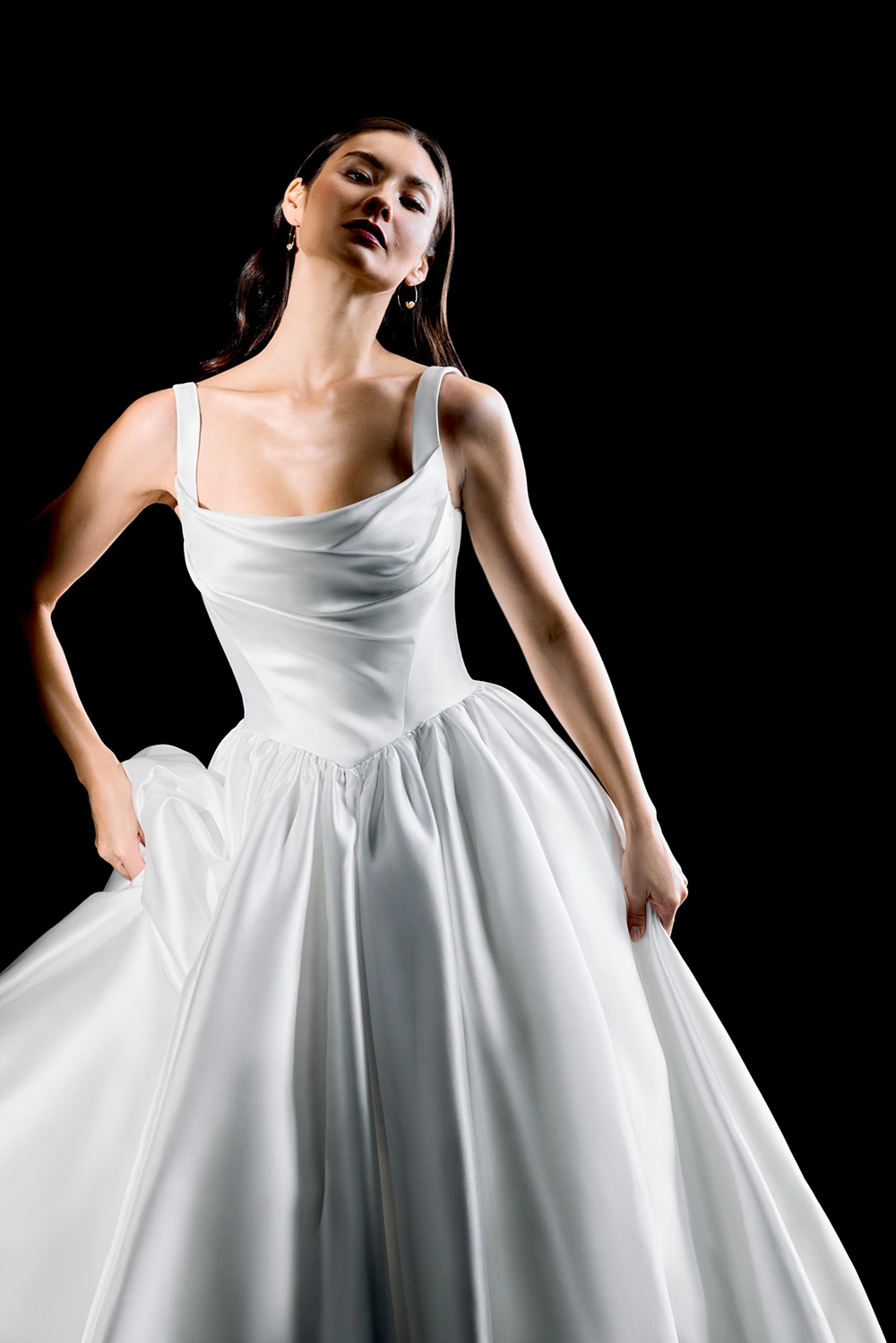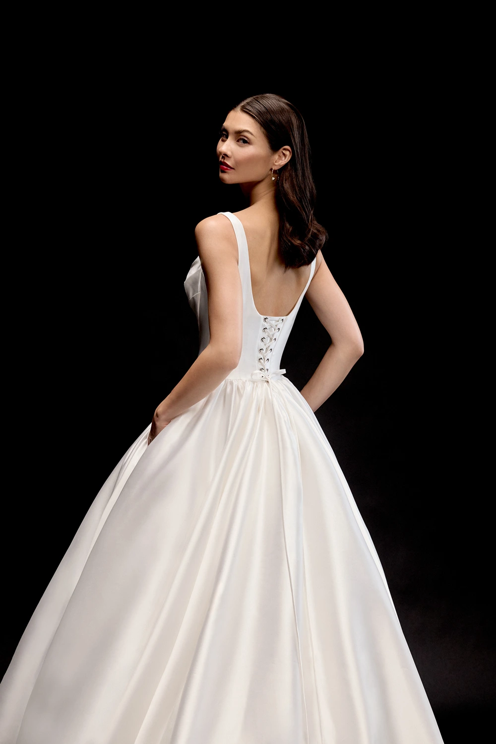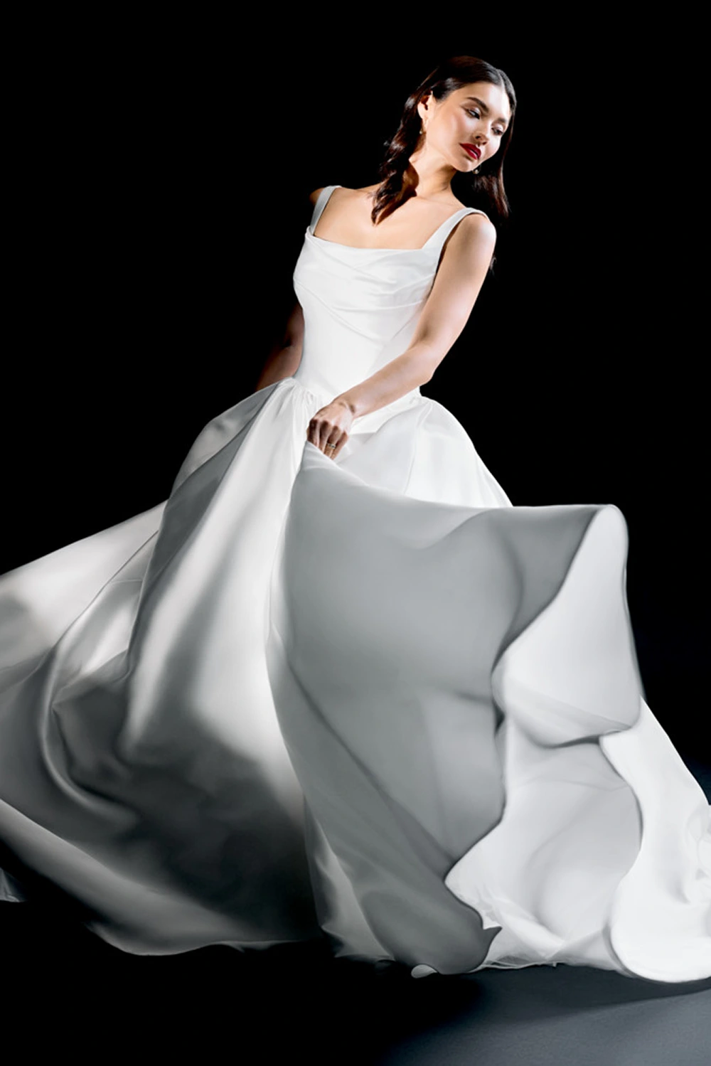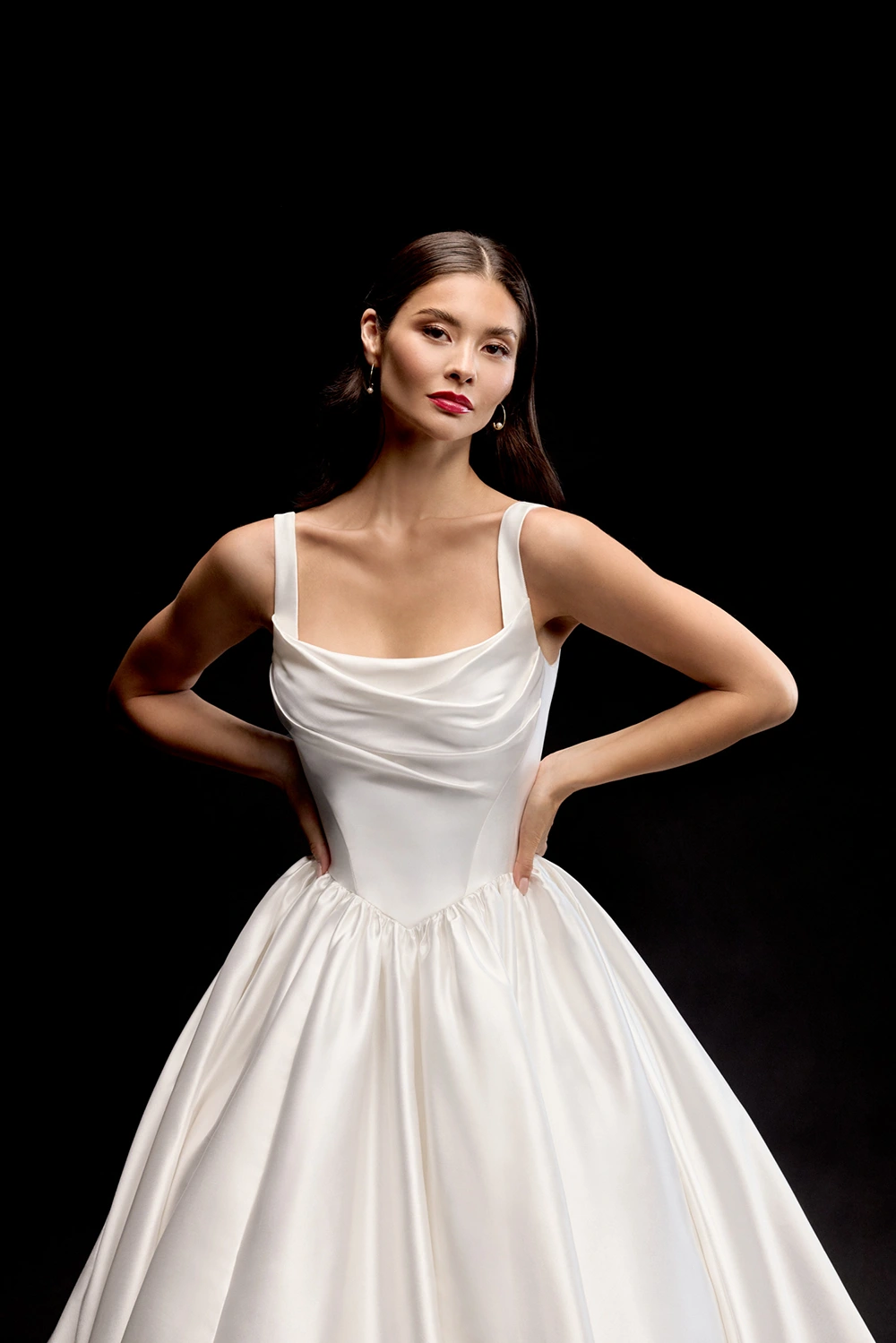 Das Modell Maris von Justin Alexander Signature ist ein cleanes Prinzessinnen Brautkleid mit Raffungen im Brustbereich .