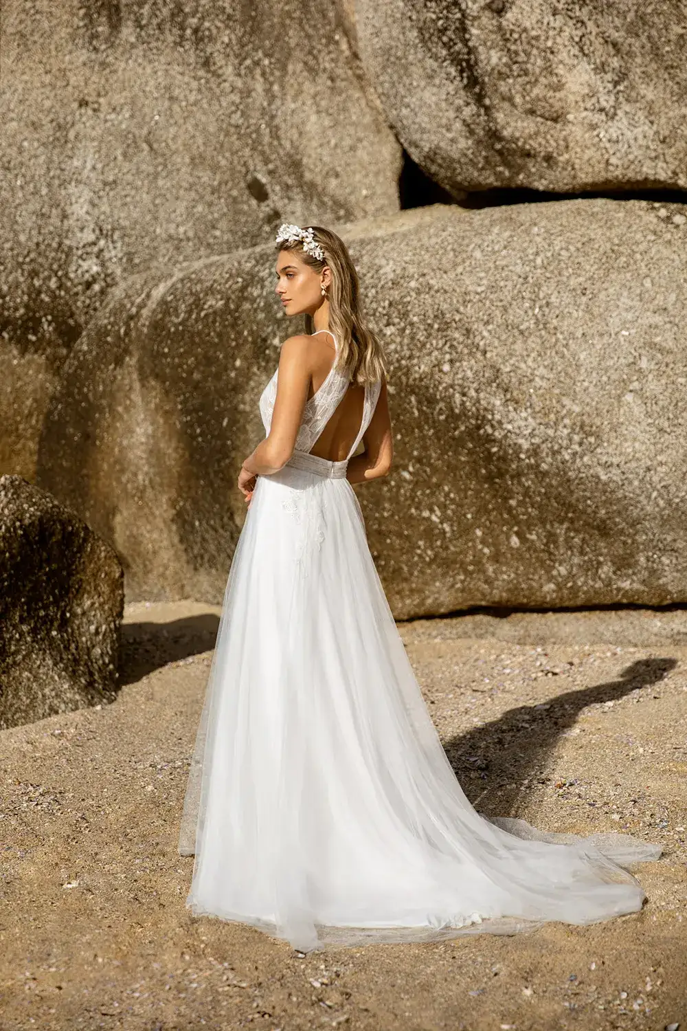 - Bestickter Tüllrock mit natürlichem Volumen und Kapellenschleppe
