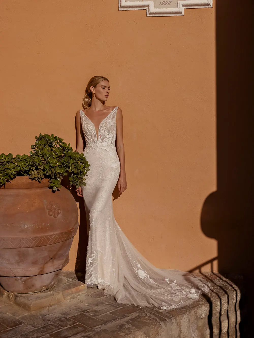 Das Brautkleid Benaz von Le Papillon ist ein funkelndes Meerjungfrauen-Brautkleid der Extraklasse. Es verleiht pure Eleganz und einen modernen Look