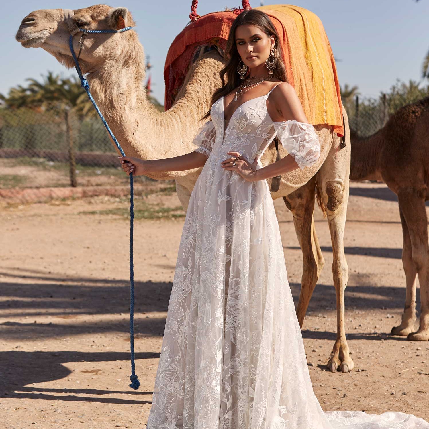 Abigail verzaubert uns durch liebevolle Details wie die feinen Perlenverzierungen, wunderbar große, florale Stickereien und durchscheinende Sequenzen. Der tiefe Ausschnitt und die abnehmbaren Ärmel ergänzen das Kleid perfekt. Der ausgeschnittene Rücken macht dieses Kleid so wunderschön. Die Schleppe gibt der fließenden A-Linie den ganz besonderen Look.