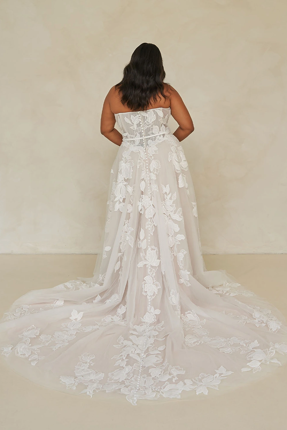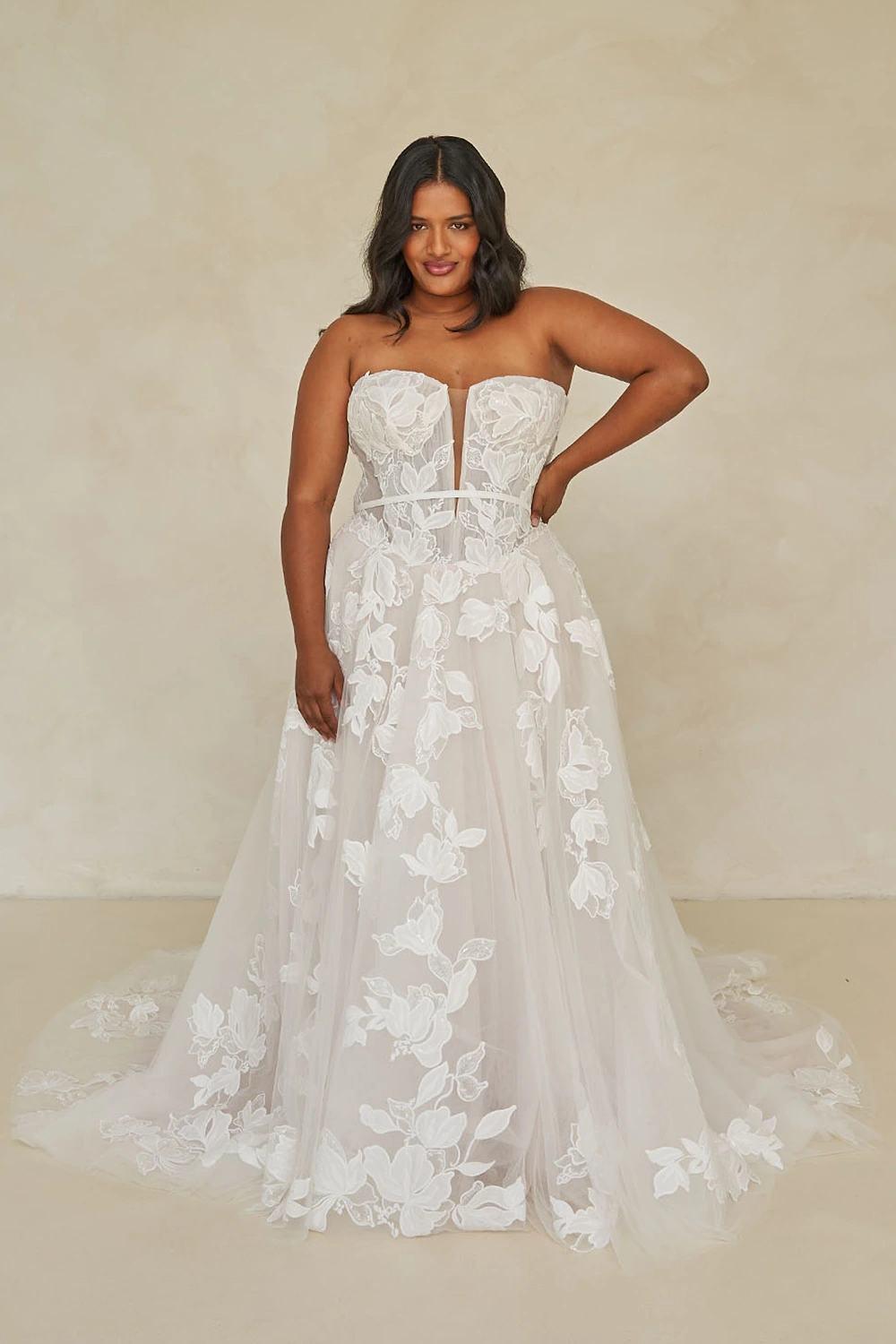 Das Modell Walker Curvy von Madi Lane ist ein romantisches A-Linien Brautkleid mit floralen Blumen-Applikationen, dass dich strahlen lässt.