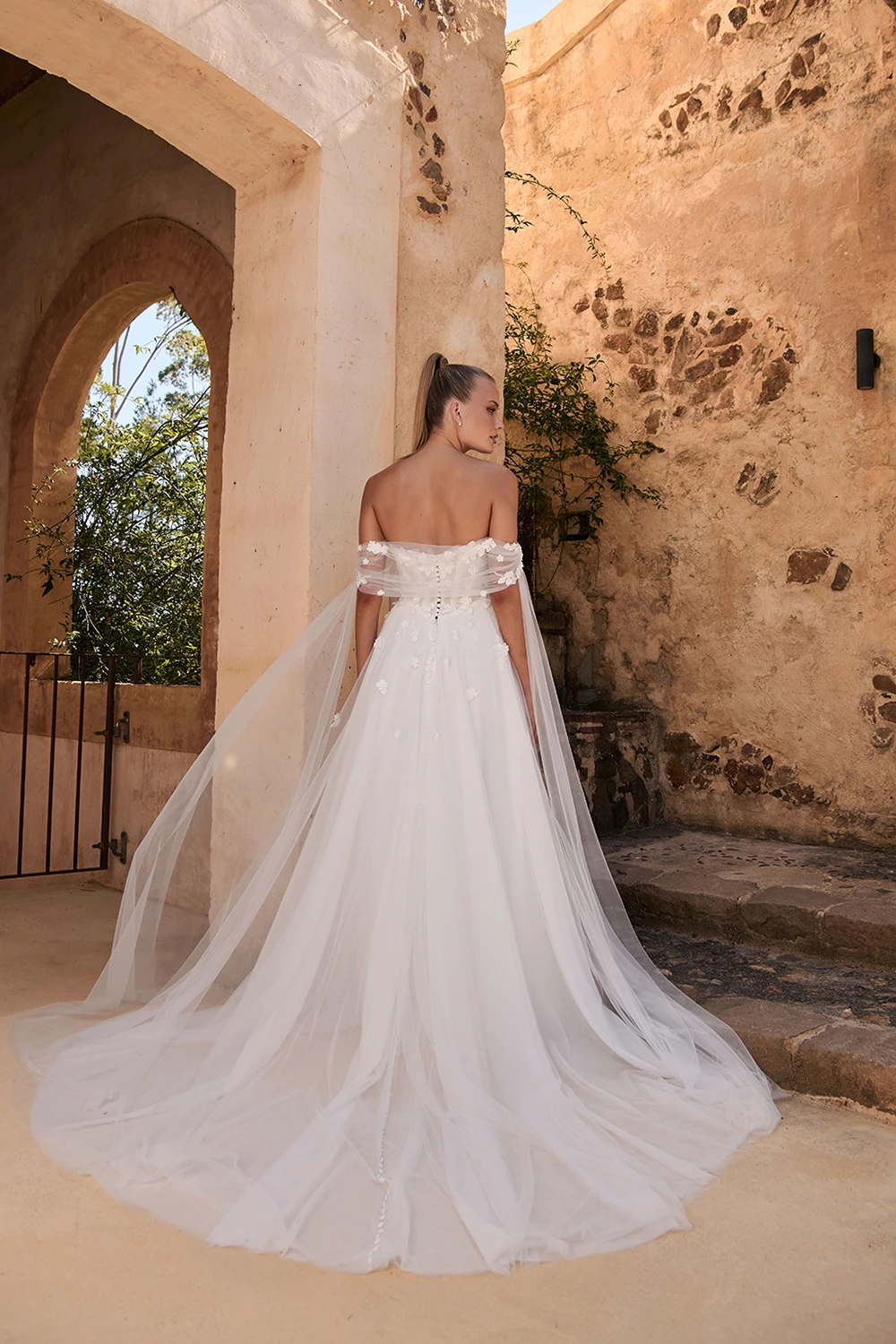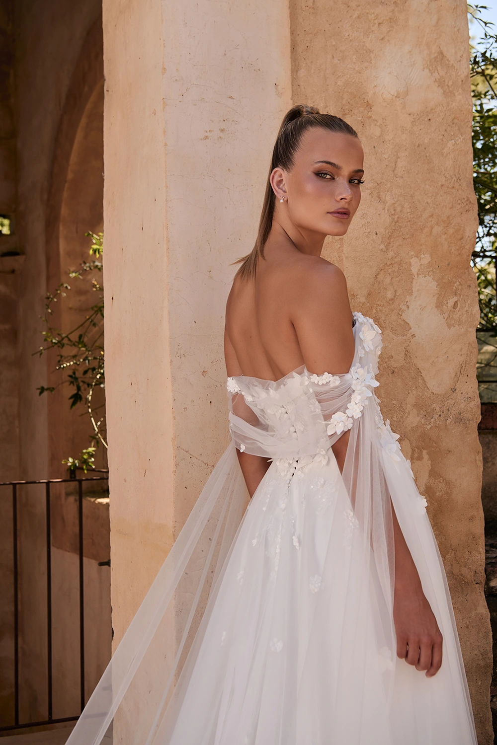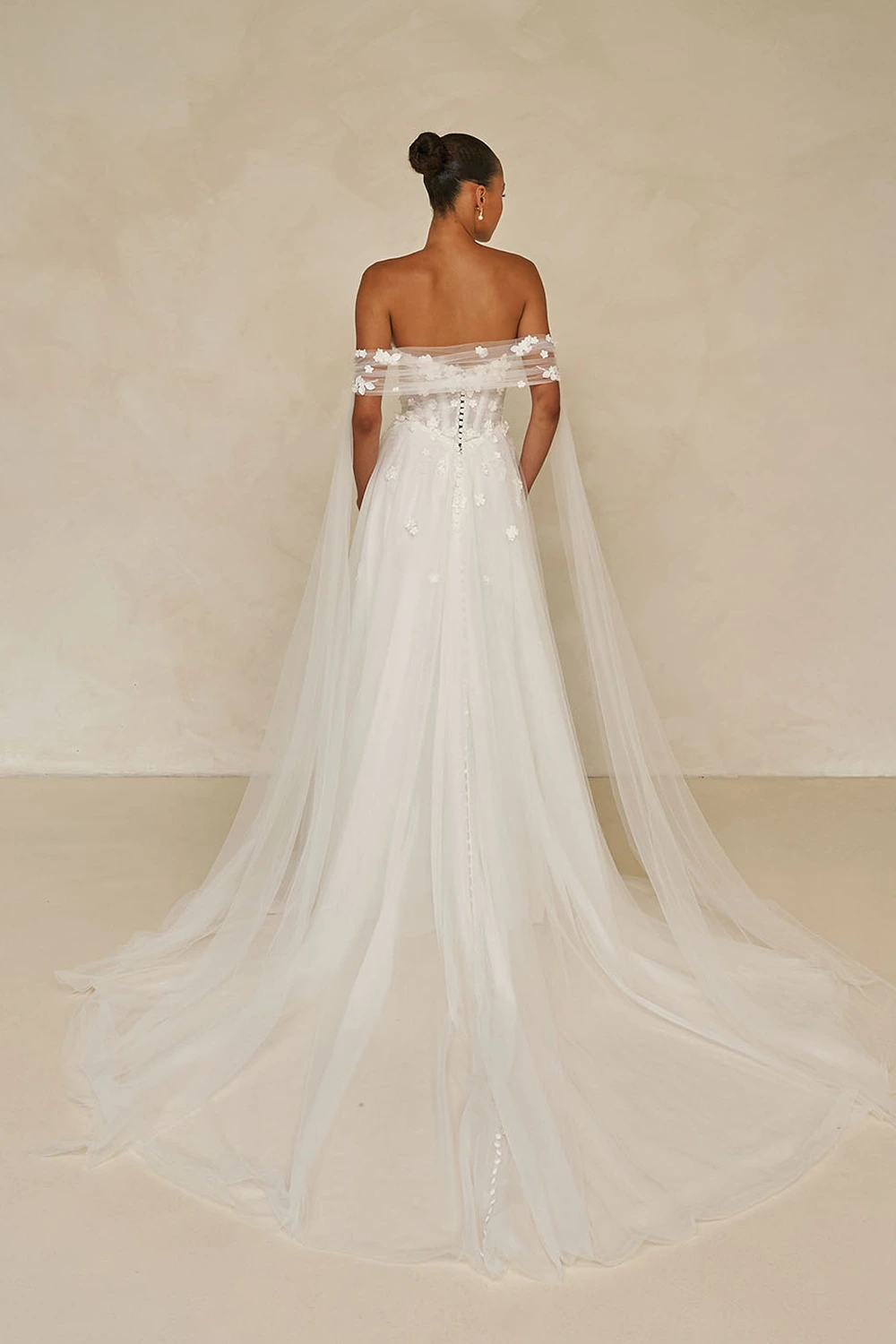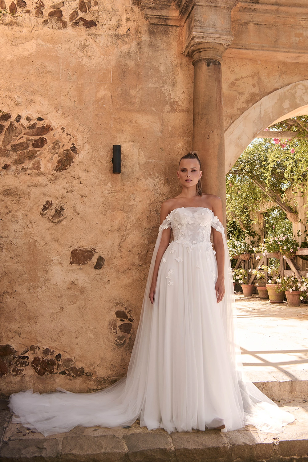 Das Modell Wrenley von Madi Lane ist ein leichtes A-Linien Brautkleid aus zartem Softtüll und einer Corsage mit 3D Blüten.
