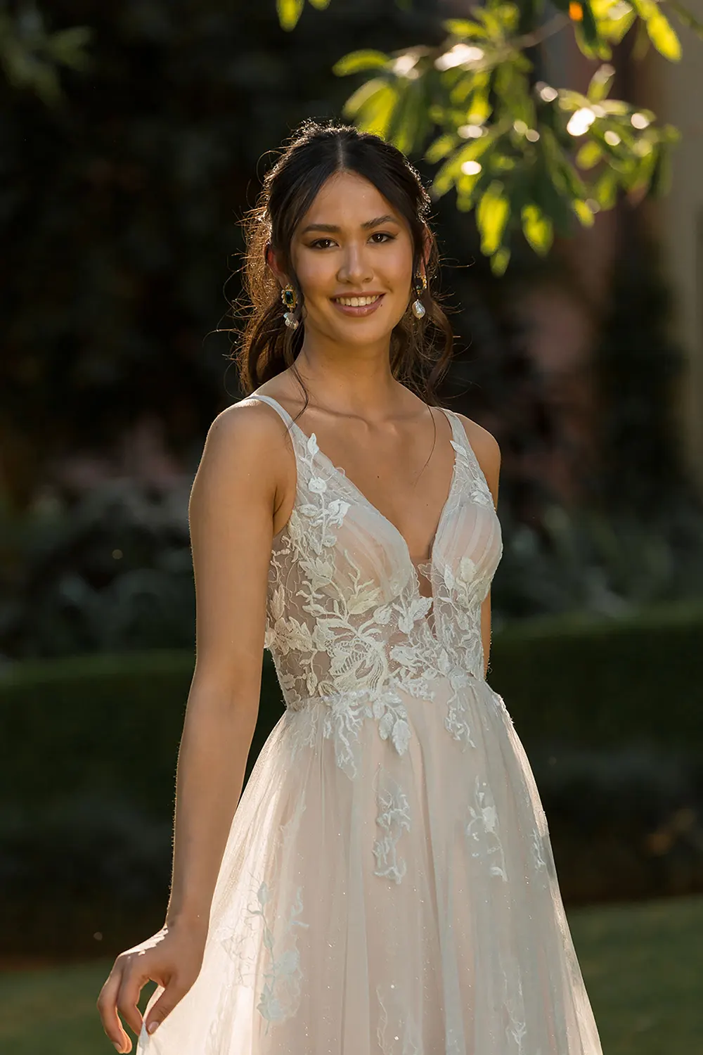 Das Brautkleid Pippa von Madi Lane ist ein von der Natur inspiriertes A-Linien-Brautkleid für die unkonventionelle Bohème-Braut.