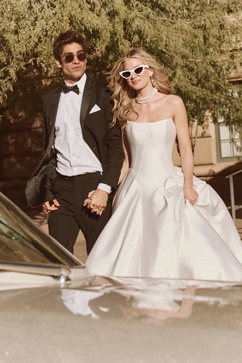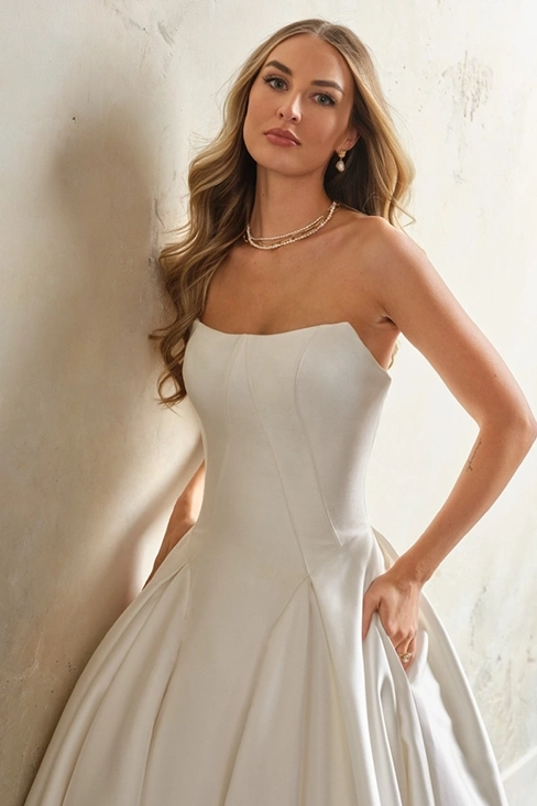 Das Brautkleid Fortune von Maggie Sottero ist ein sehr modernes und cleanes Prinzessinnen-Brautkleid aus Satin.