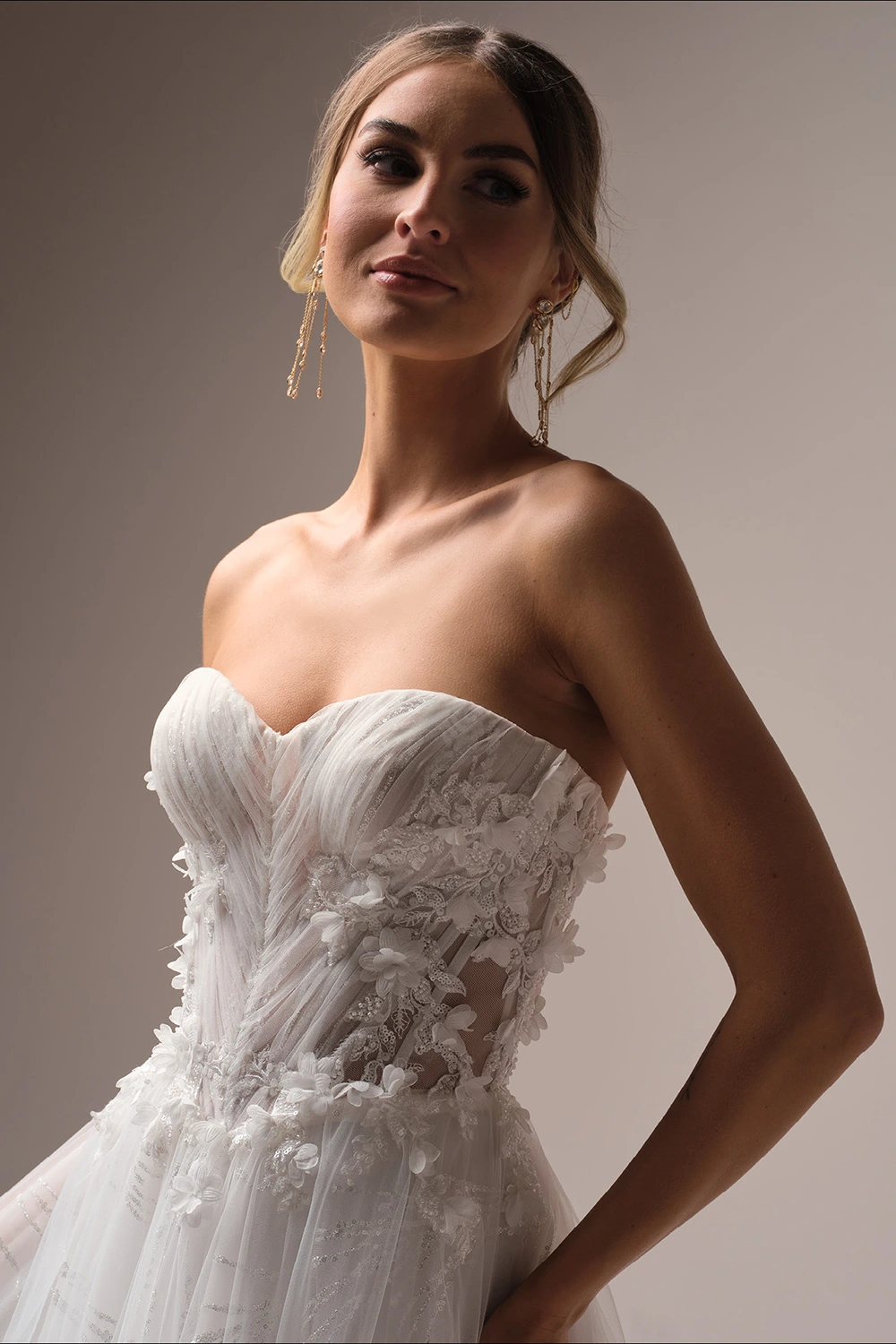 - Plissiertes Illusionsmieder aus Tüll mit sichtbaren Stäbchendetails und baskischer Taille