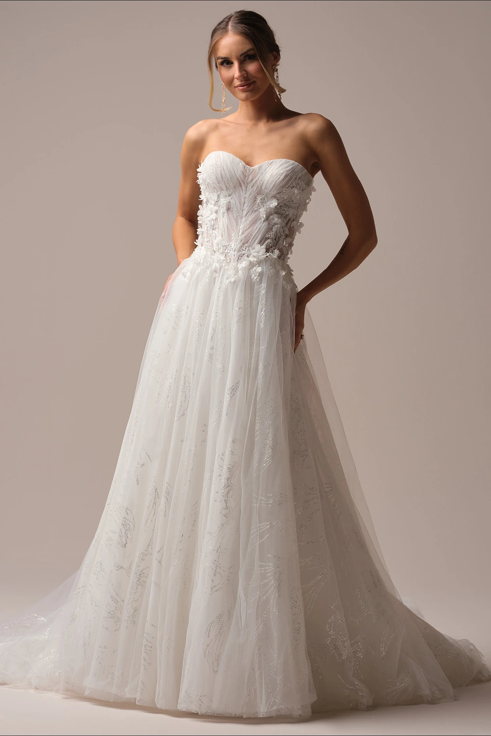 Das Modell Ireland von Maggie Sottero ist ein zart glitzerndes A-Linien Brautkleid.