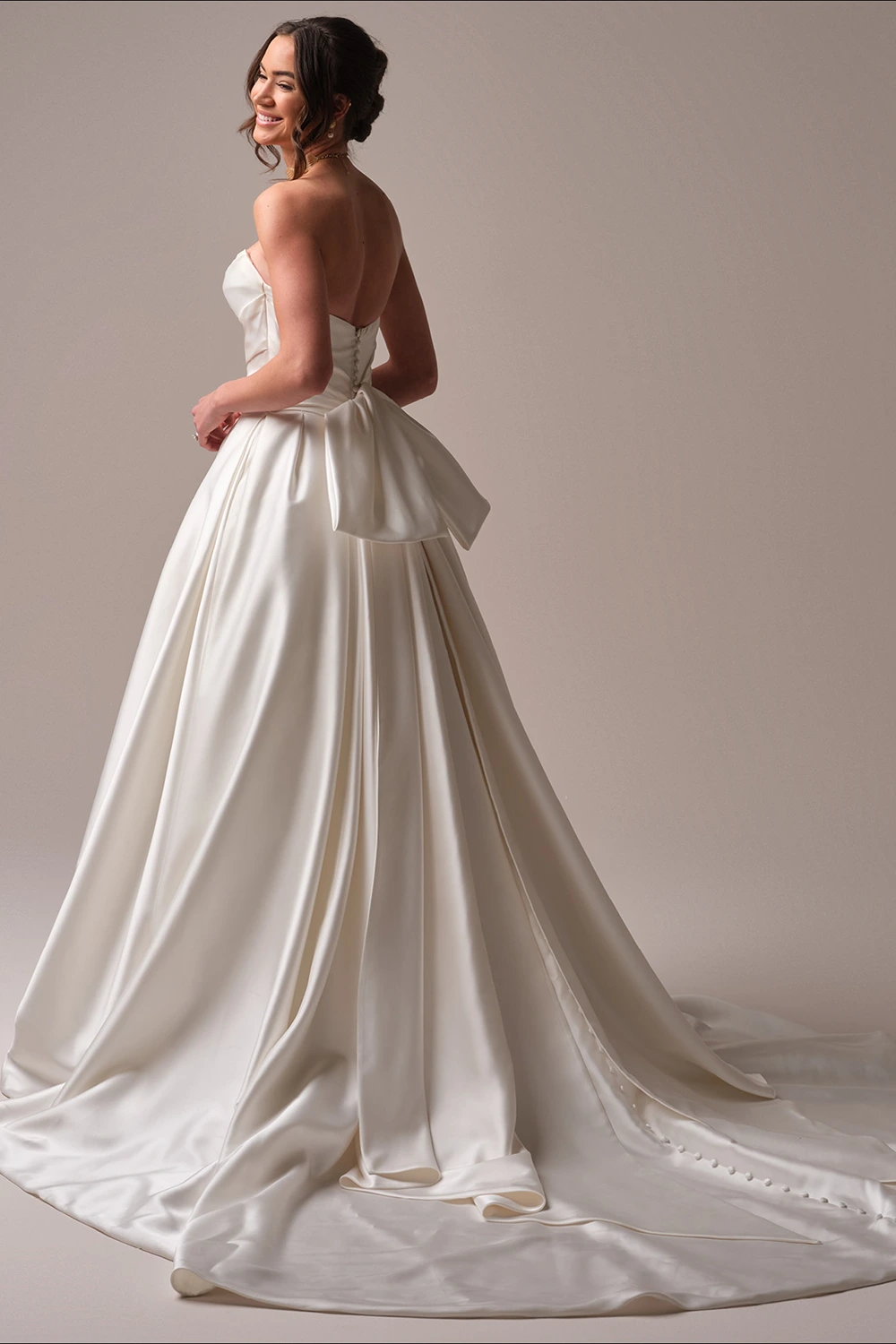 Das Modell Maureen von Maggie Sottero ist ein modernes und schlichtes A-Linien Brautkleid im Couture Stil.