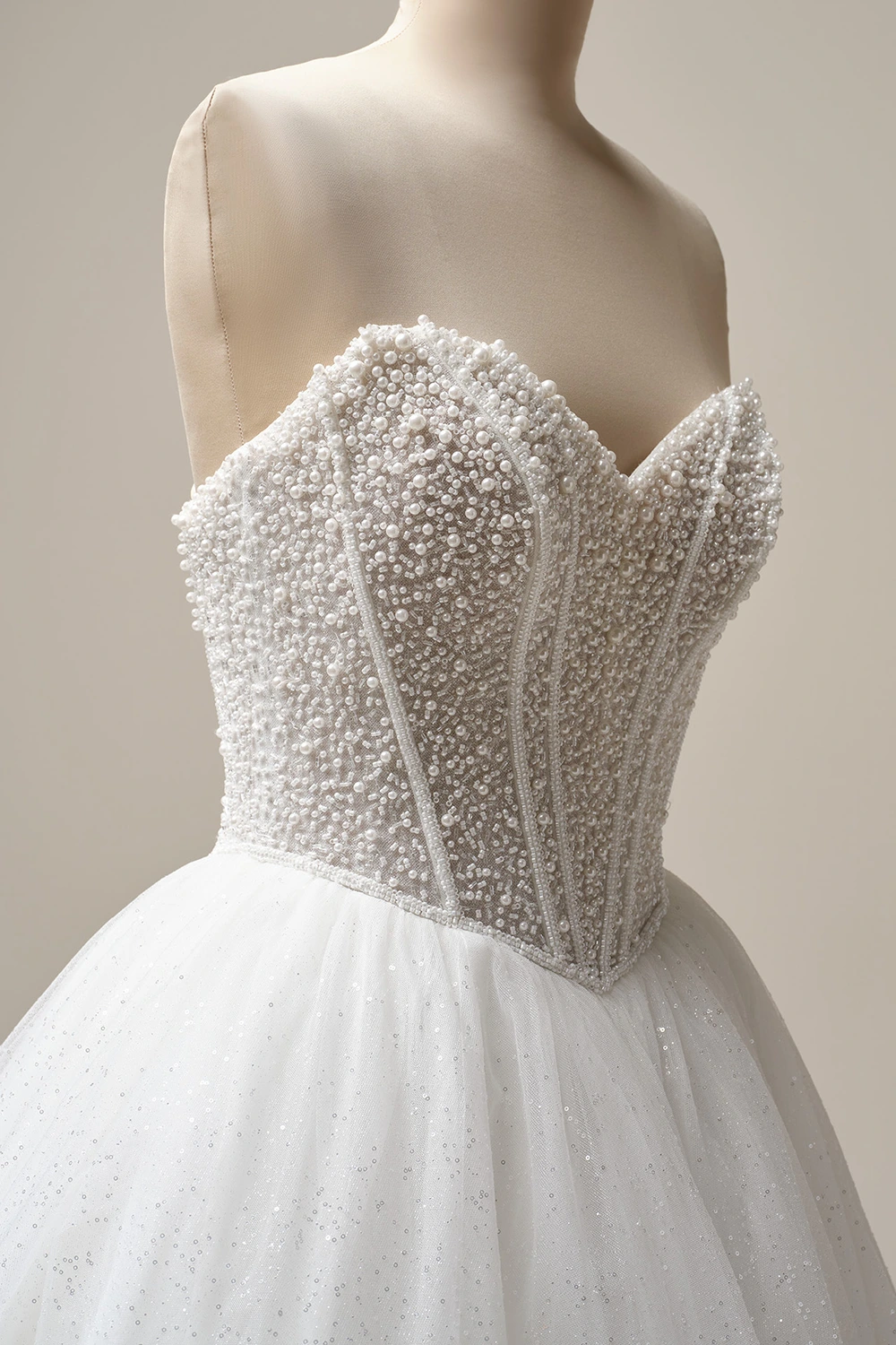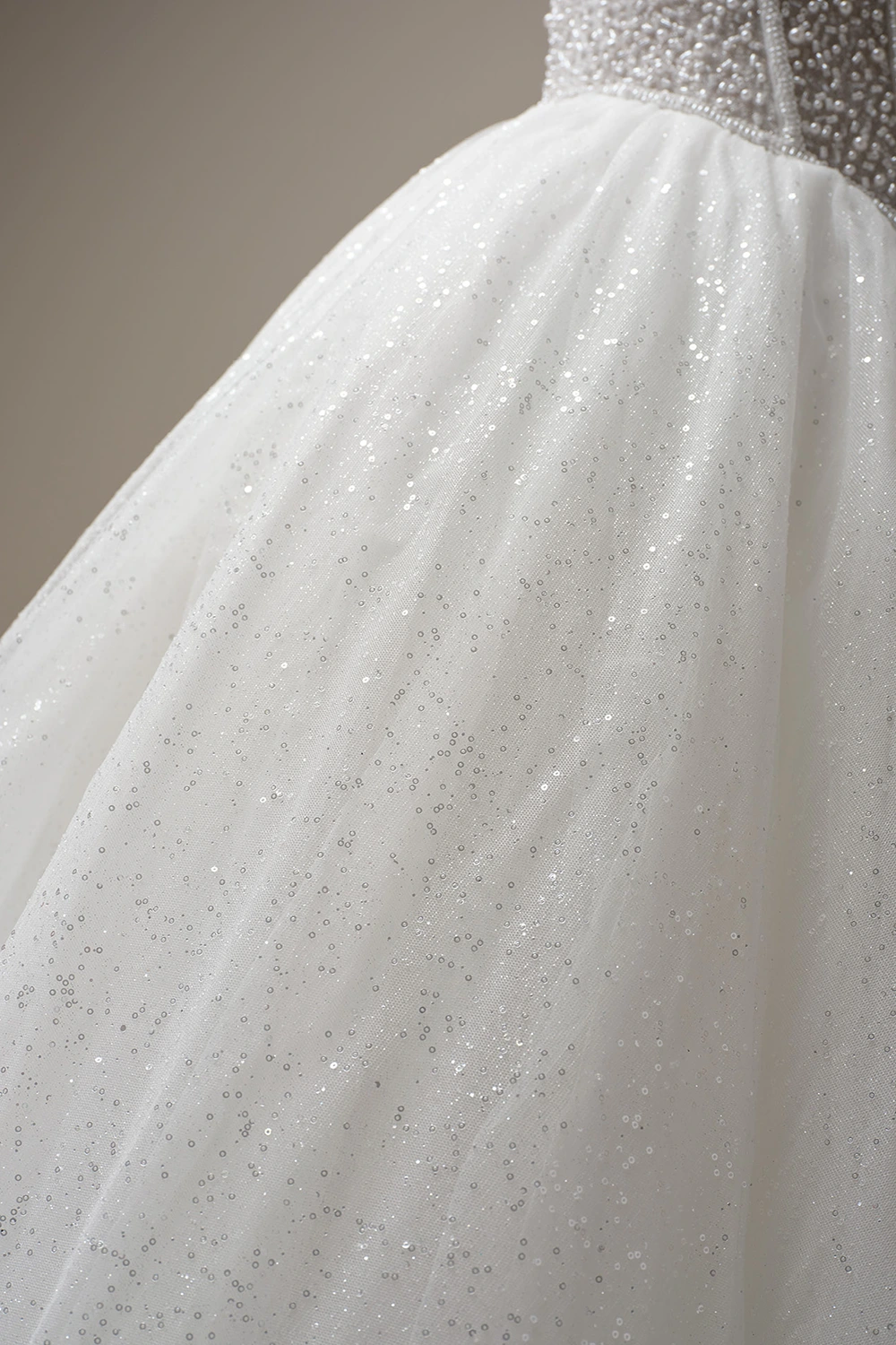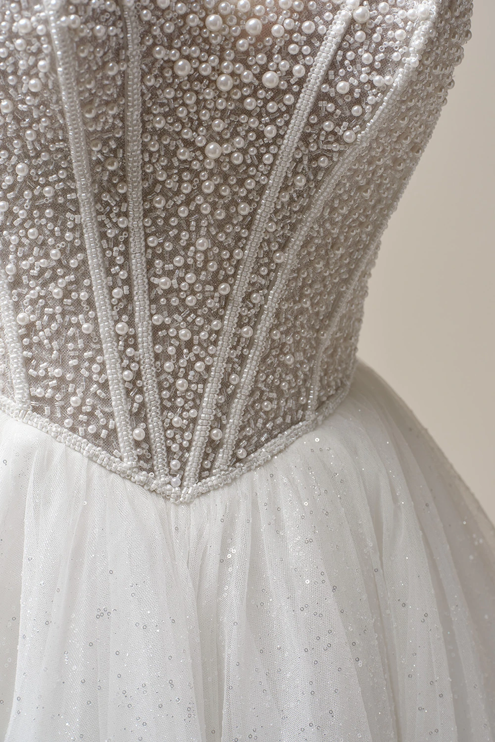 - Baskisches Taillenmieder, verziert mit Perlen über Glitzertüll