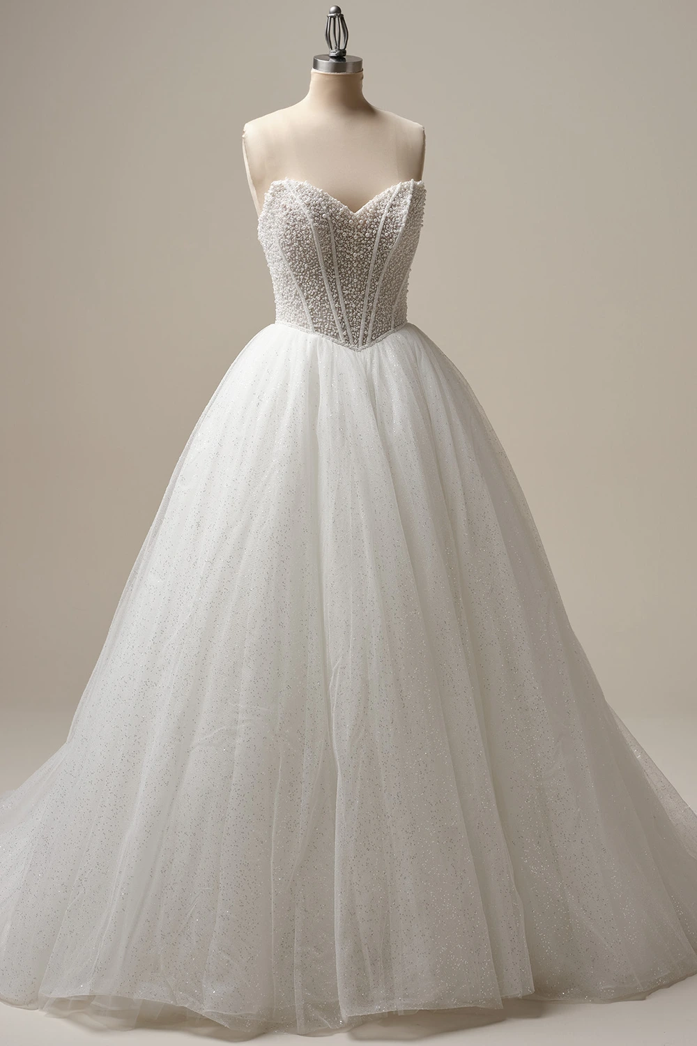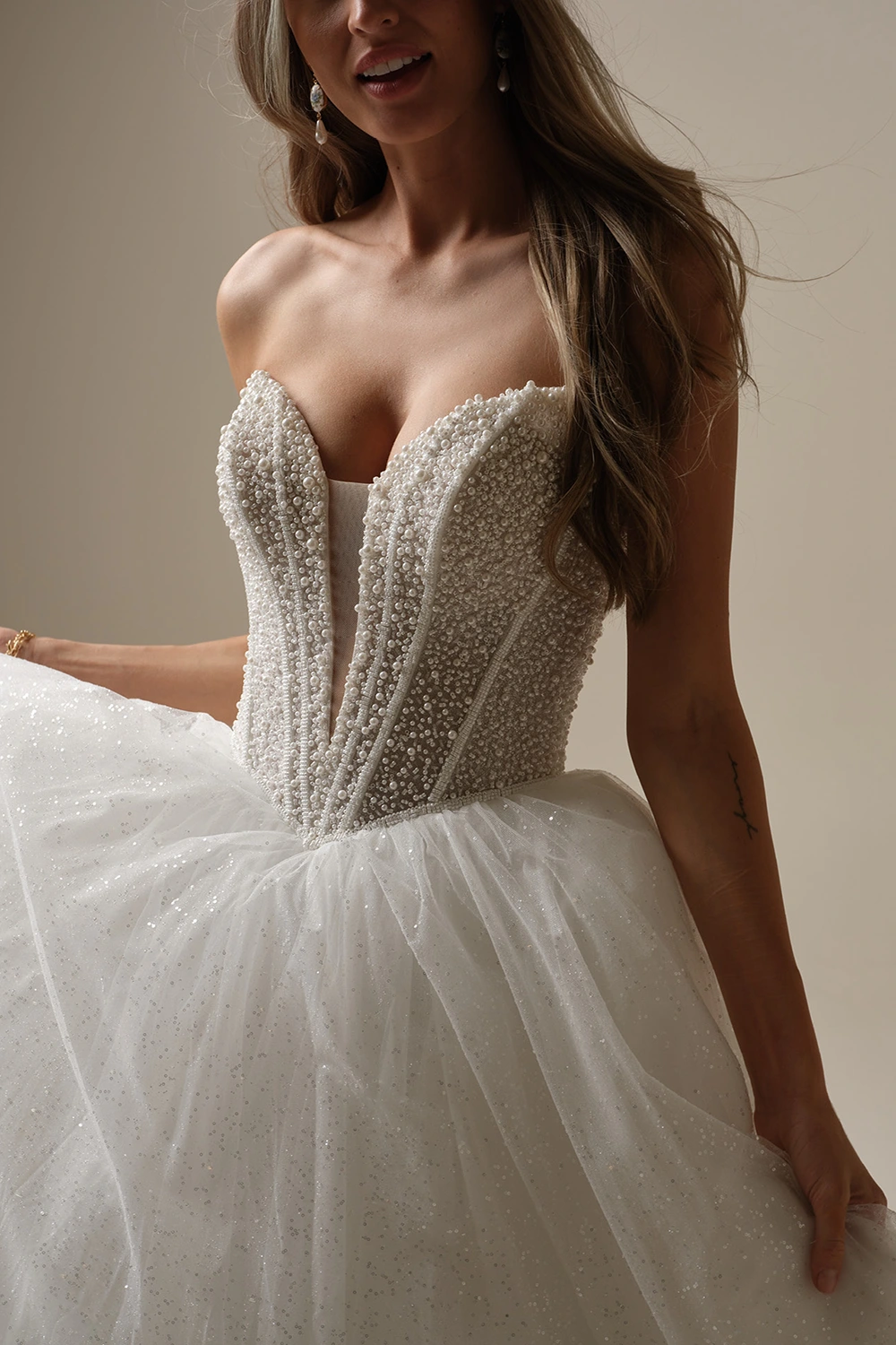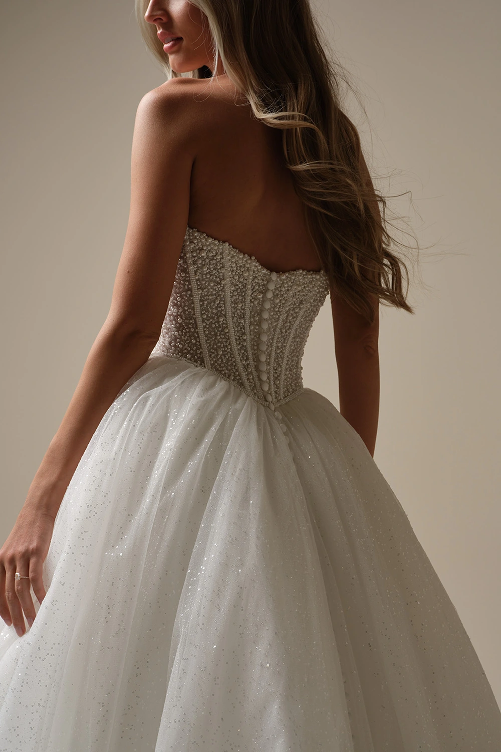- Baskisches Taillenmieder, verziert mit Perlen über Glitzertüll