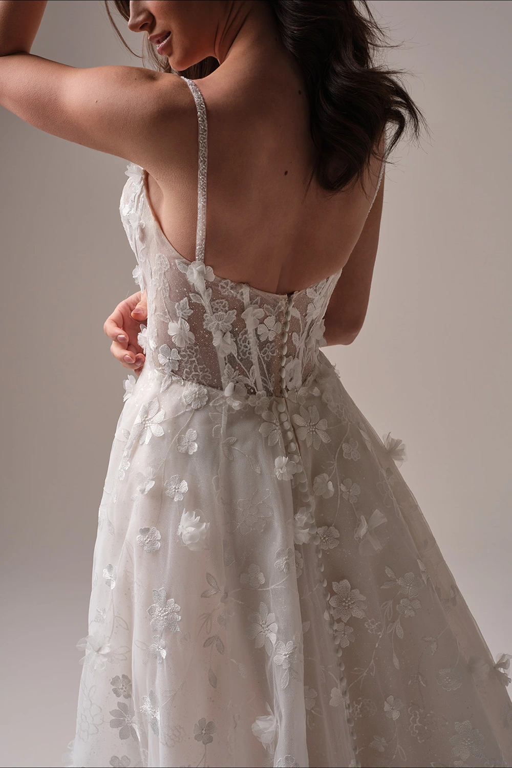 - Paillettenbesetzte Spitze mit funkelnden 3D-Blumen