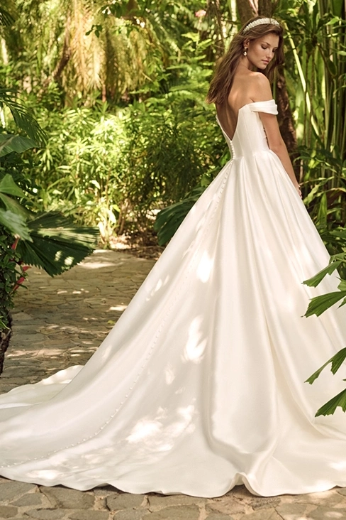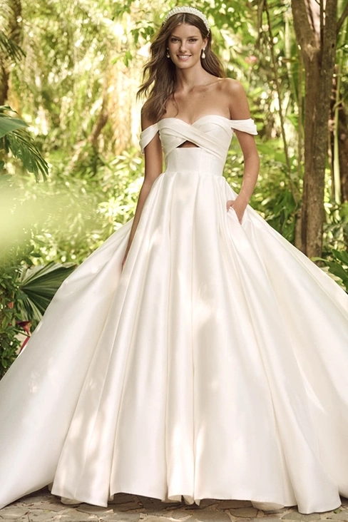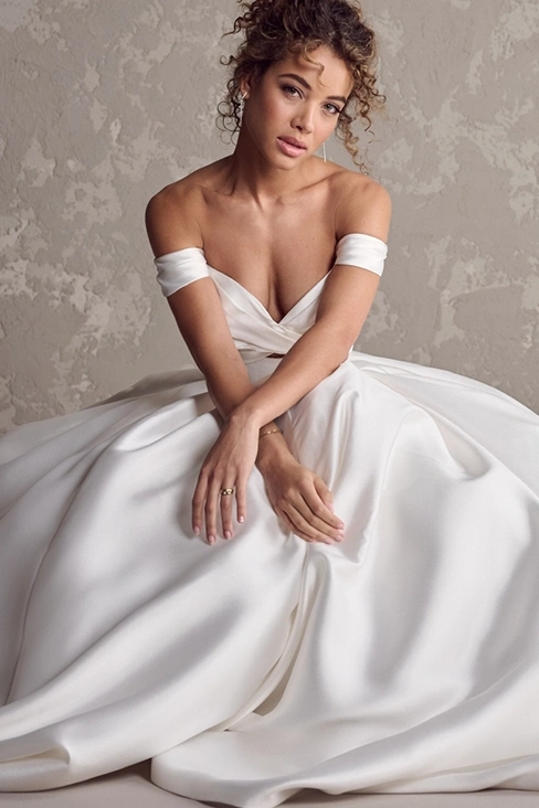 Das Brautkleid Zinaida von Maggie Sottero ist ein schlichtes Prinzessinnen-Brautkleid mit Schlüssellochausschnitt im Dekolleté.