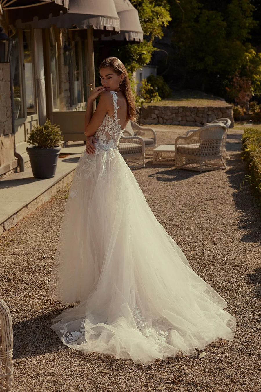 Das Brautkleid Dawn von Modeca ist ein leichtes A-Linien Brautkleid mit Spitze die in den Rock hinein fließt. Die zarte Spitze verteilt sich über das gesamte Oberteil und ist leicht transparent.