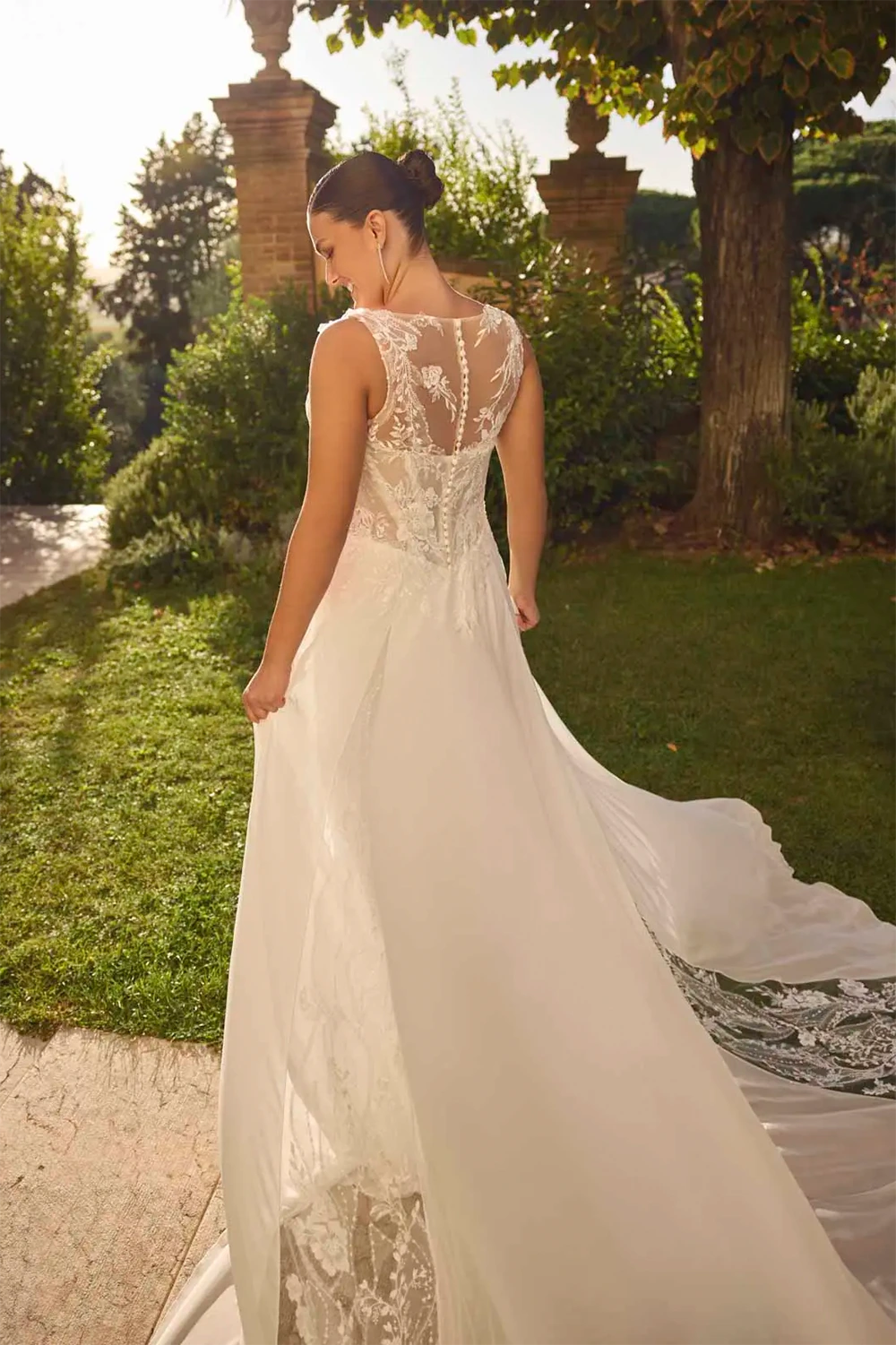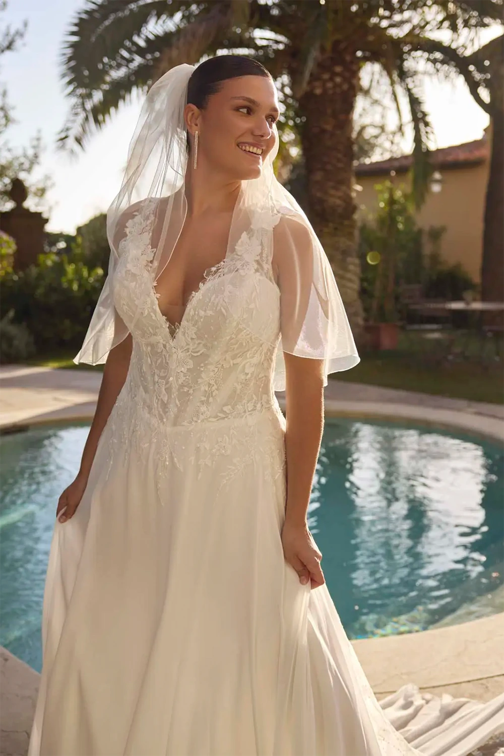Das Modell Jaimie Curvy von Modeca ist ein romantisches A-Linien Brautkleid mit elegantem Rücken.