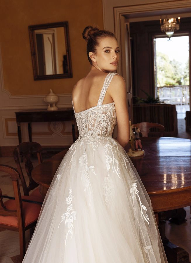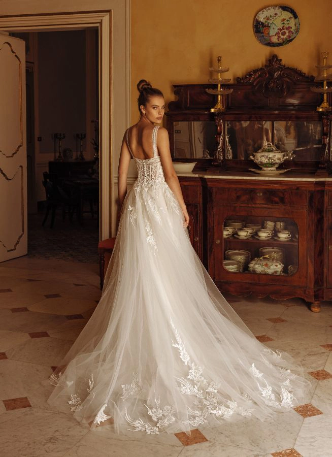 - Bestickter Tüllrock mit Kapellenschleppe