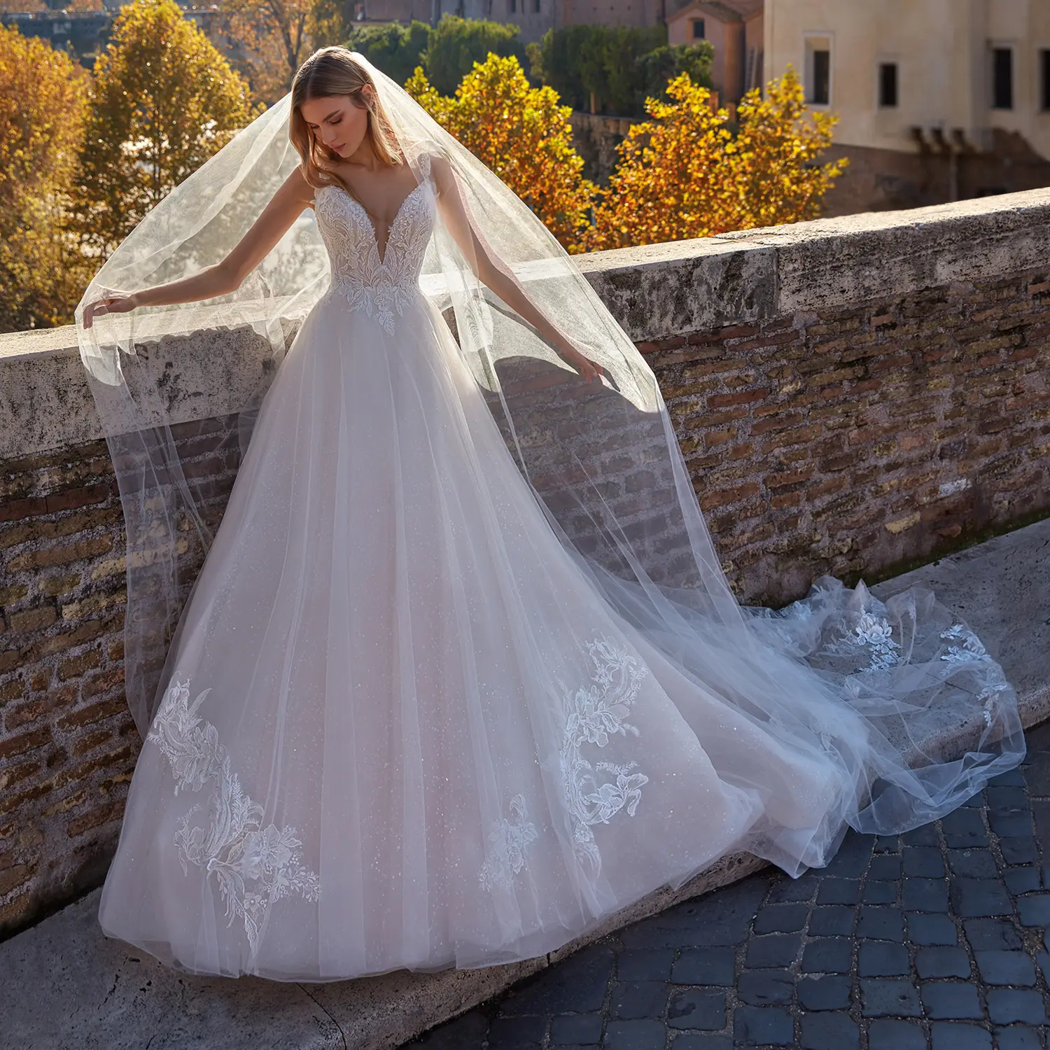 - Voluminöser Rock aus Glitzertüll mit Kapellenschleppe
