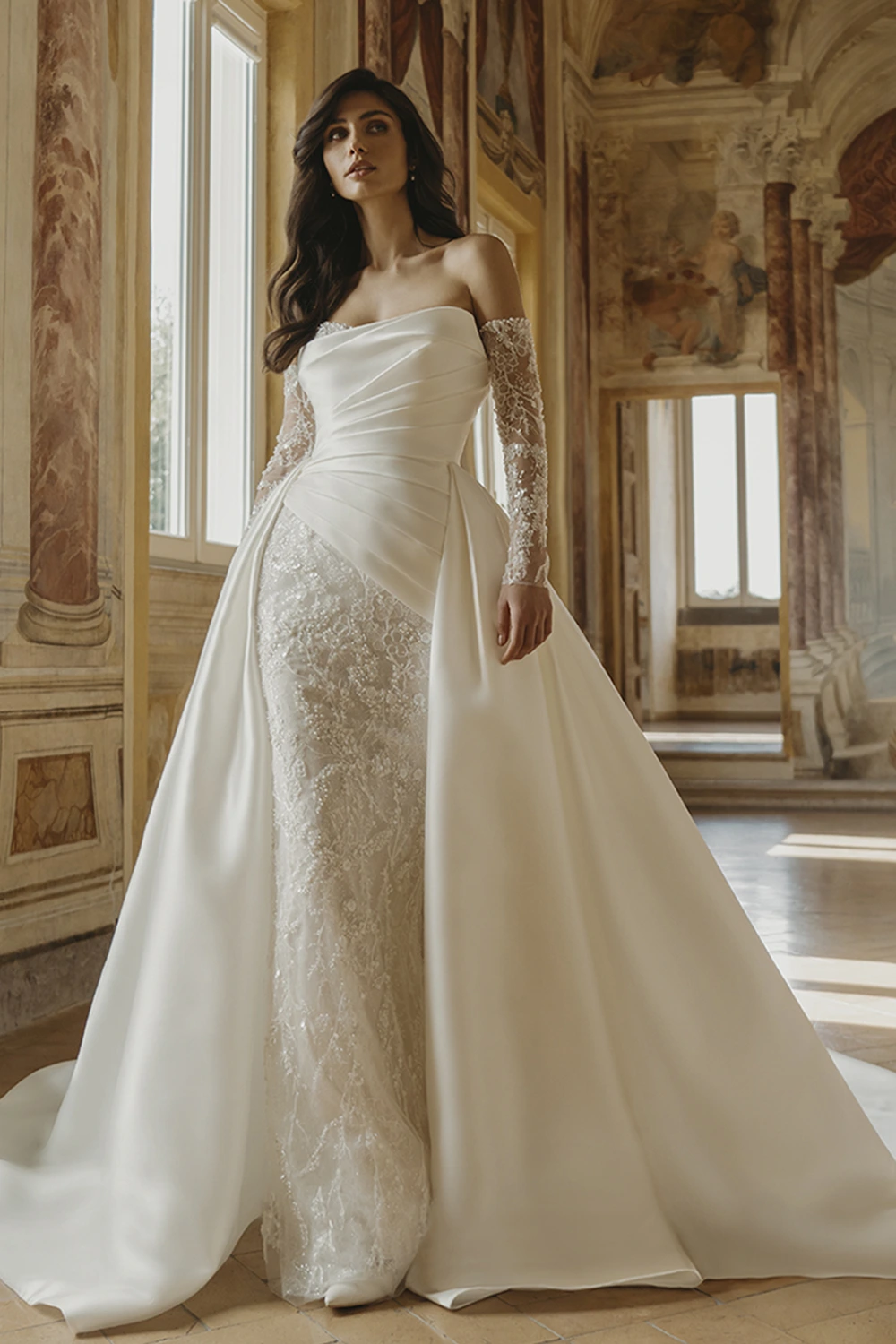 Material Mikado, Tüll, Satin, Chantilly-Spitze, Pailletten, Spitze mit Perlenbesatz