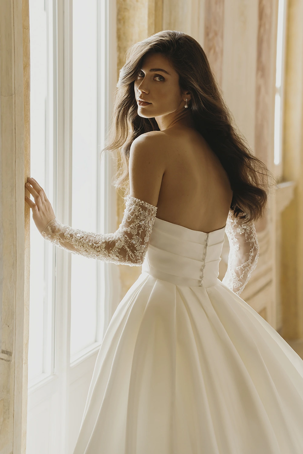 Das Modell Delaney von Pen Liv ist ein exklusives Brautkleid, dass du als Meejungfrau sowie als Prinzessinnen Brautkleid tragen kannst. Es ist eine 2-in-1 Kreation, die dich an deinem Hochzeitstag individuell inszeniert