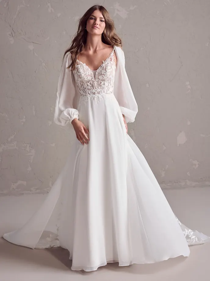 Das Brautkleid Sue von Rebecca Ingram ist ein romantisches, verspieltes A-Linien Brautkleid, dass dich elfengleich erscheinen lässt.