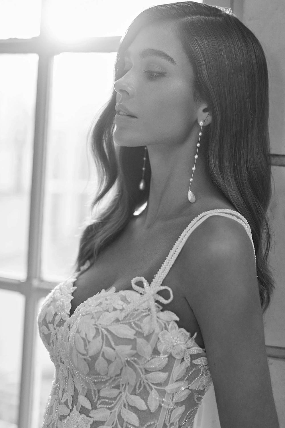 Das Modell Elora von Rosa Clara ist ein romantisches A-Linien Brautkleid aus Spitze und mit Strasssteinen.