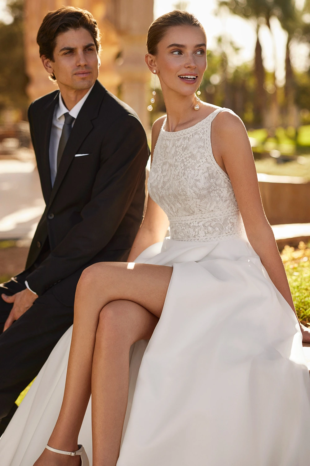 Das Modell Ombra von Rosa Clara ist ein elegantes Brautkleid in A-Linie für einen klassischen Look.