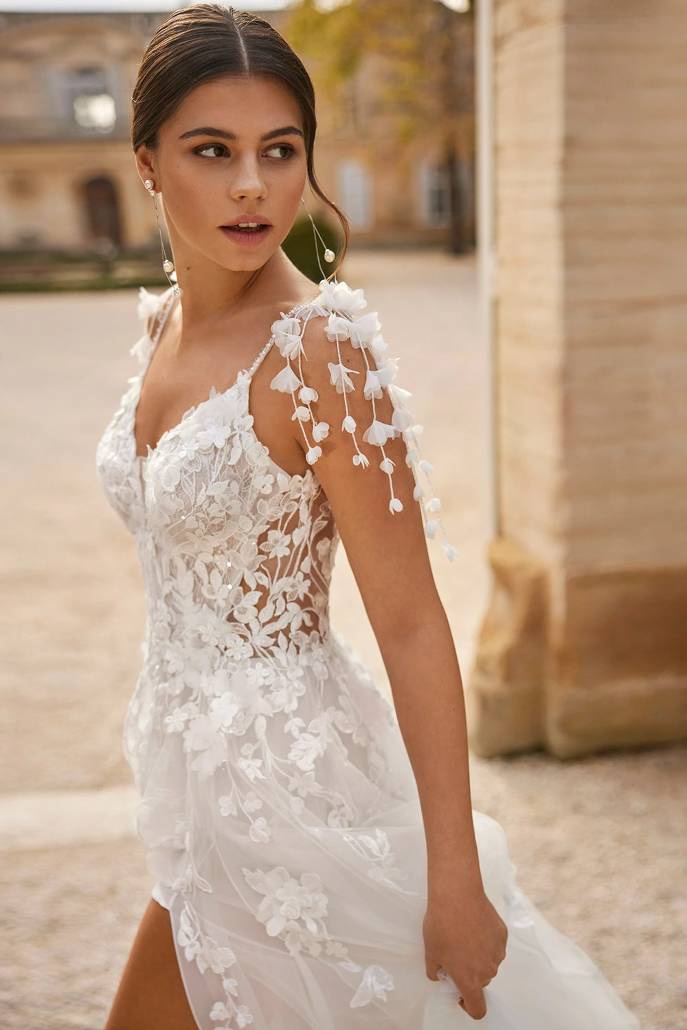 Das Modell Vals von Rosa Clara ist ein romantisches A-Linien Brautkleid mit ausgefallenem Spitzenoberteil.