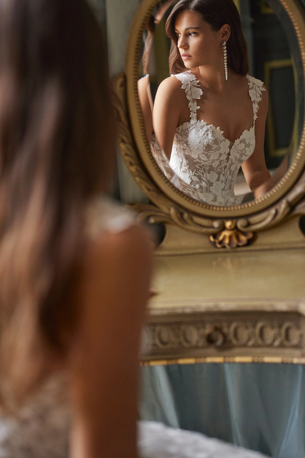 Das Modell Vannia von Rosa Clara ist ein glamouröses Prinzessinnen-Brautkleid mit royalen Elementen.