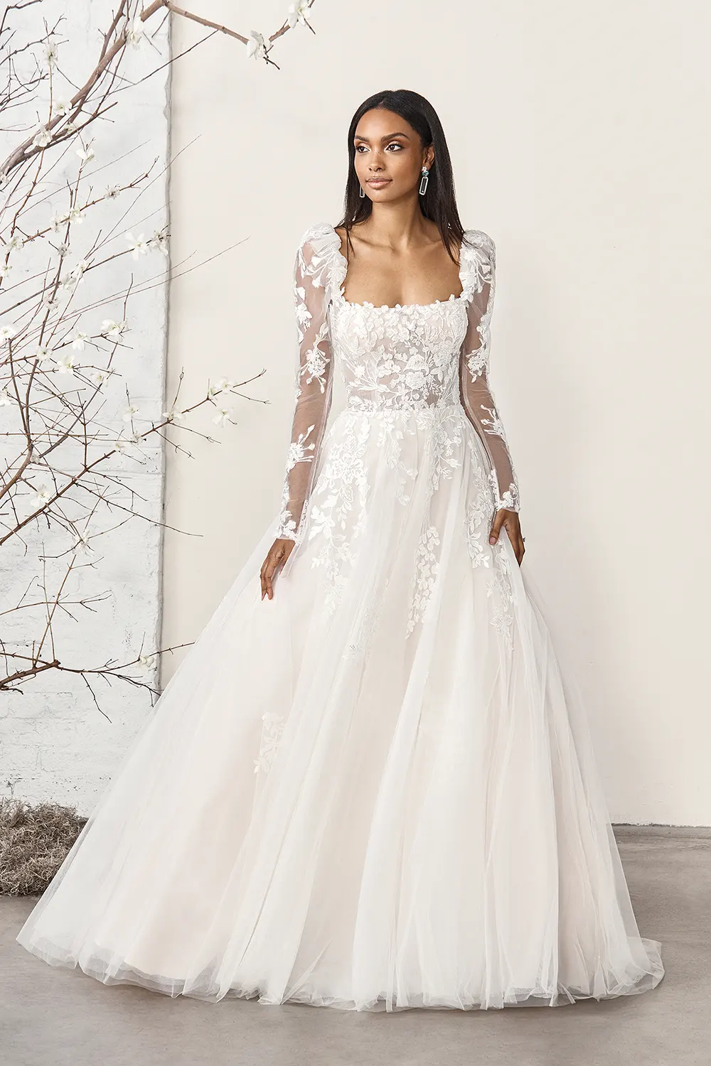 Das Brautkleid 44395 von Sincerity Bridal ist ein verträumtes Prinzessinnen-Brautkleid mit durchsichtigem Mieder und eckickem Ausschnitt.