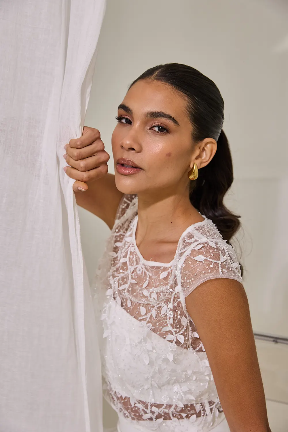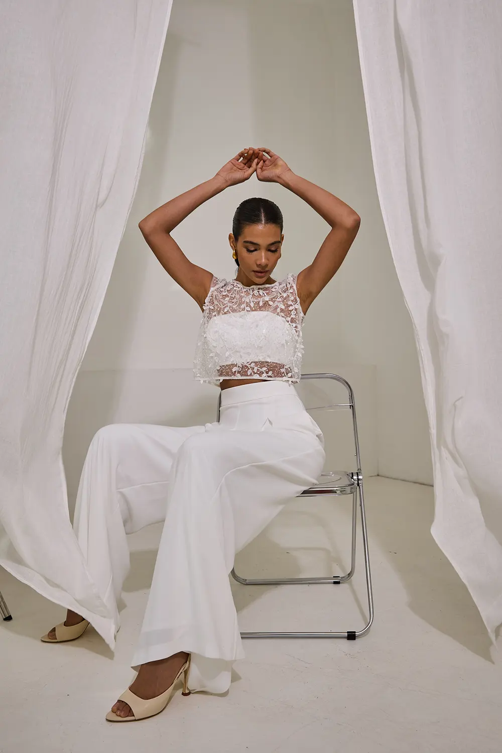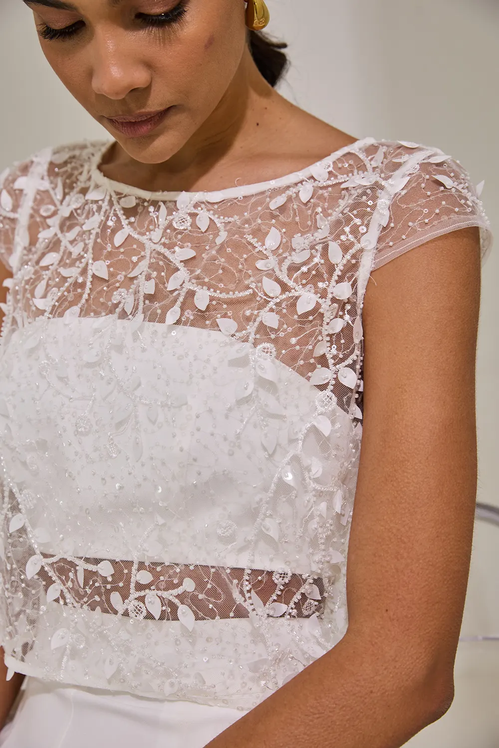 Das Modell Amy von Weise ist ein modernes Brauttop, das deinem Mix and Match Look für das Standesamt den WOW-Effekt garantiert.