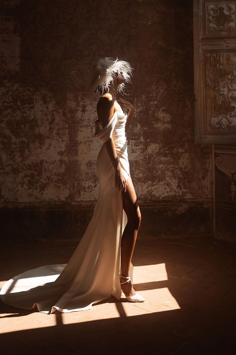 Das Modell Amelia von Yedyna ist ein cleanes Fit und Flare Brautkleid mit figurschmeichelnden Raffungen.
