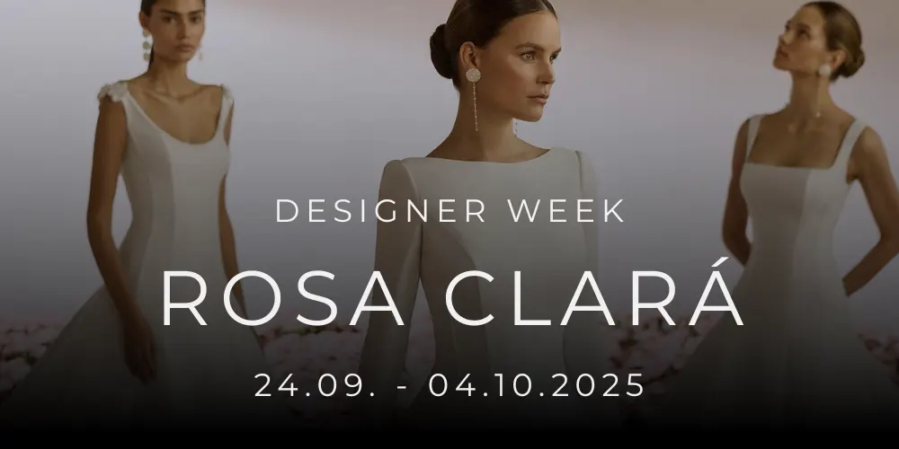 Nur vom 24.09. bis 04.10.2025 kannst du exklusive ROSA CLARÁ Modelle bei uns im Hochzeitshaus entdecken und dir besondere Vorteile sichern. Finde dein Traumkleid und erhalte 150 € geschenkt beim Kauf eines ROSA CLARÁ Brautkleides sowie 10 % Rabatt auf alle Accessoires.