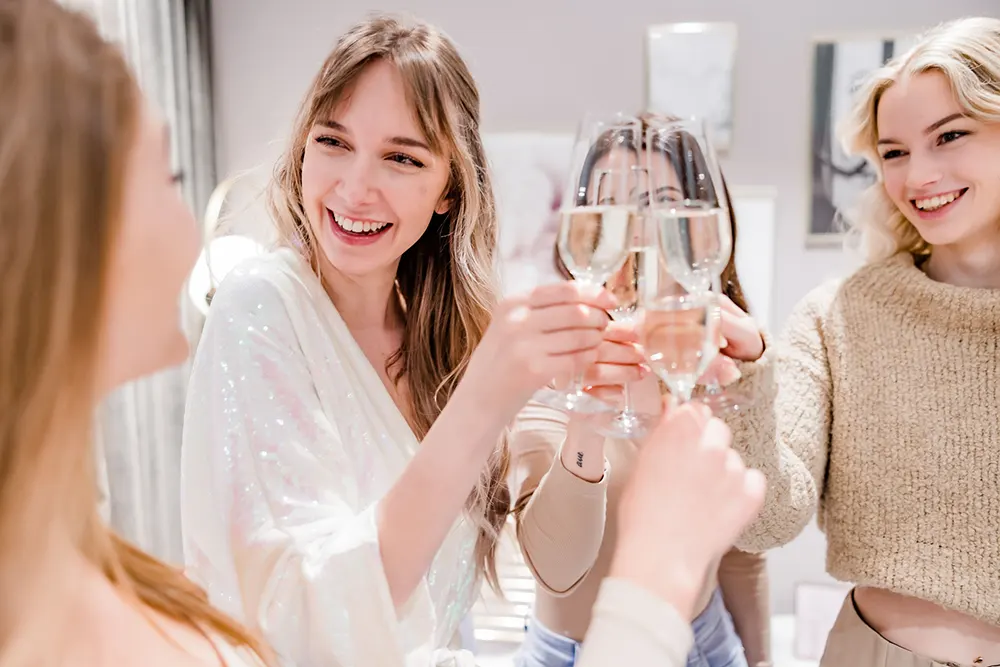 Du möchtest deine Brautkleidanprobe zu einem echten Highlight machen? Dann entdecke unsere exklusiven VIP-Termine, bei denen dich private Anprobe-Momente, stilvolle Extras und gemeinsame Zeit mit deinen Liebsten erwarten. Wähle zwischen VIP Light, VIP Classic oder VIP Premium und mach deine Anprobe zu einem Erlebnis, das du nie vergessen wirst.
