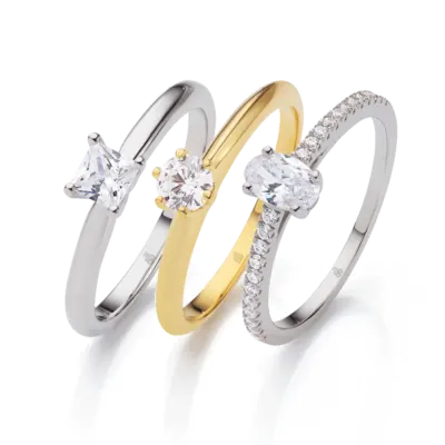 Obwohl der klassische Solitär-Ring oft mit einem Brillanten assoziiert wird, können verschiedene Arten von Diamanten verwendet werden, um diesen zeitlosen Stil zu kreieren. Beliebte Optionen sind der Prinzessinenschliff, der Smaragdschliff, der Ovalschliff und viele mehr.